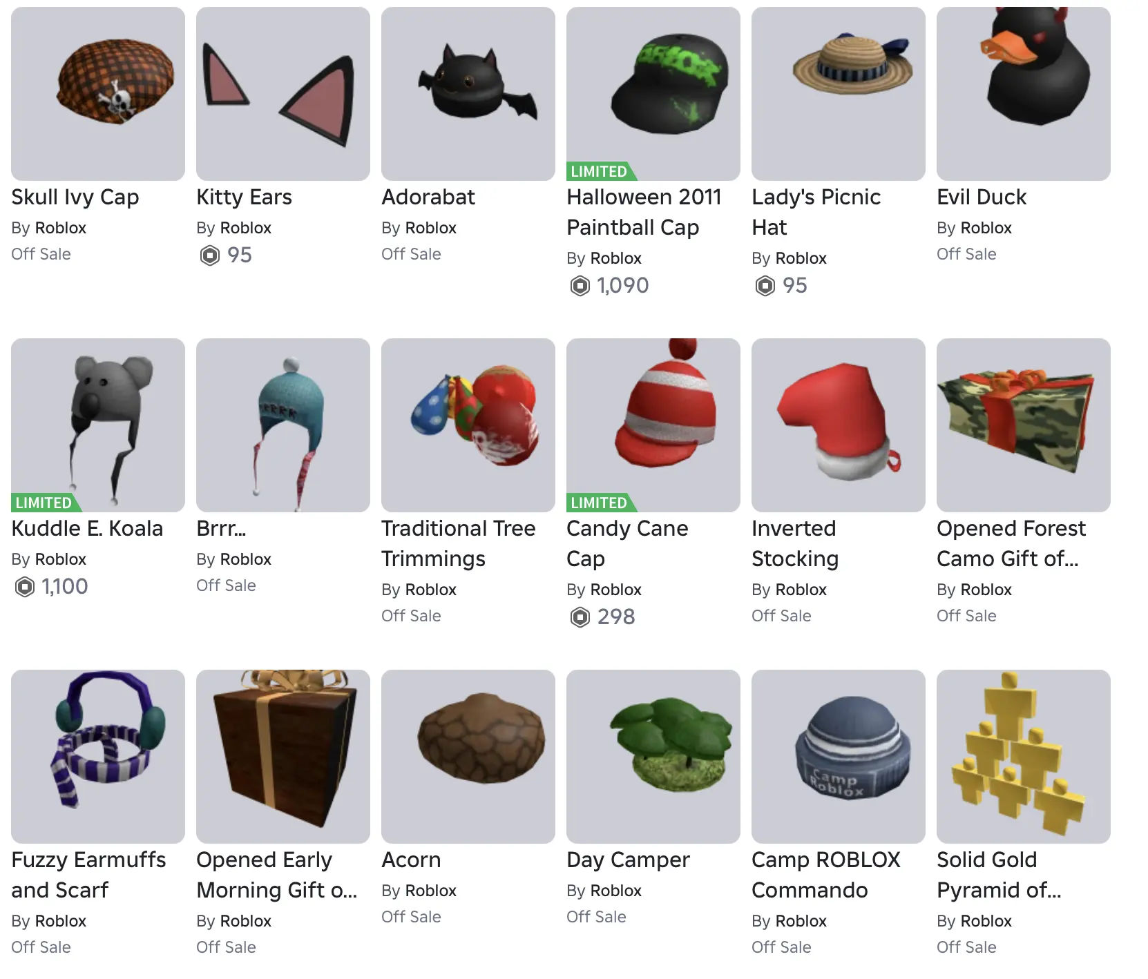 ROBLOX 2009 Account π₯26+ Offsales & Limiteds π₯ Evil Duck + Solid Gold Pyramid of Interns + Inverted Stocking + Day Camper + ROBLOX Interns 2010 Mug + Traditional Tree Trimmings + Halloween 2011 Paintball Cap + Acorn | 400+ Robux SPENT | Unverified β