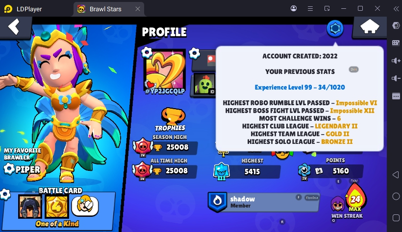 128 SKINS 💯 25.006 CUPS 🏆 76 BRAWLERS 🐼 11 HYPERCHARGED 🩸 15 MAX BRAWLERS 💛 CURSED KENJI ❤️ HELLBULL ❤️ DARK LORD SPIKE ❤️ KITSUNE LOLA ❤️ TENGU ANGELO 💯