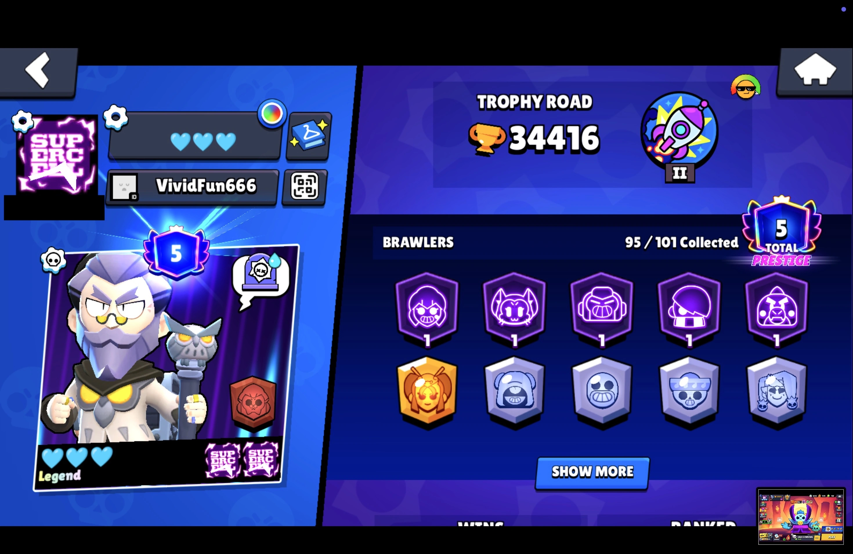 140 GEMS ⭐ 241 SKINS ⭐ 34.400 TROPHY ⭐ 95 BRAWLERS ⭐ 25 HYPERCHARGED ⭐ 25 MAXED BRAWLERS ⭐ 5 PRESTIGE ⭐ 22 BUFFIES ⭐ DARK LORD SPIKE ⭐ IMPIE COLETTE ⭐ MIDORI PAWLETTE ⭐ CERBERUS TICK ⭐ DEMON OTIS ⭐ LEGENDARY ⭐ 30K