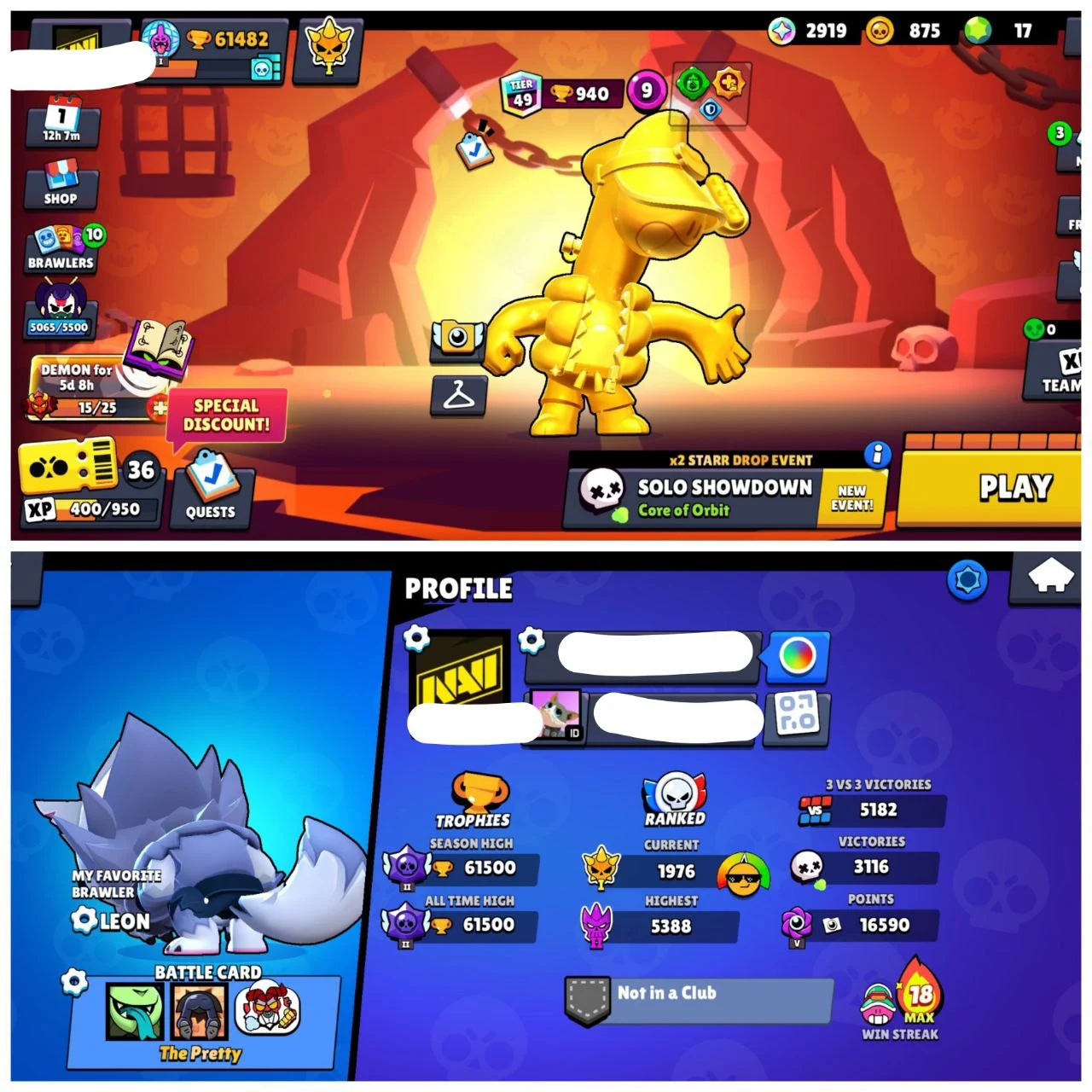 🏆61.5K TROPHY🏆21 MAX [ 16 HYPERCHARGED ]🧨214 SKINS🧨WHITE WOLD LEON SKIN🧨21 MAX RANK BR🧨CHEAP DEAL🧨INSTANT DELIVERY:)