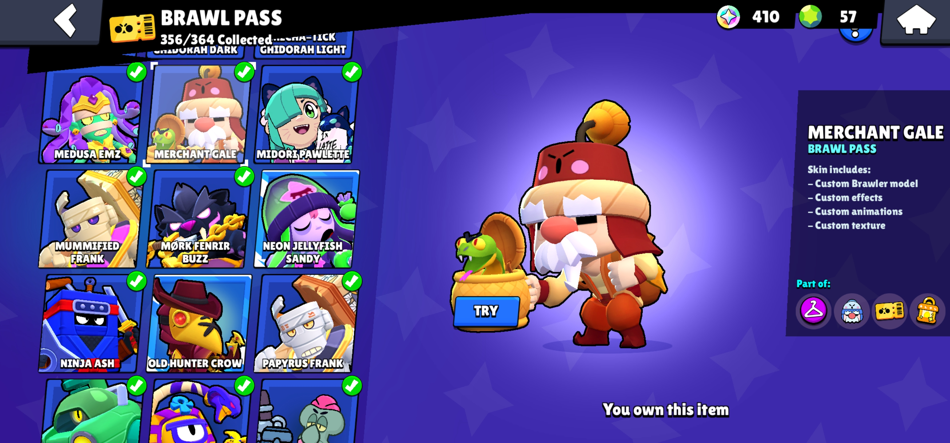 [ HALLOWEEN SALE ] 🔥 480 SKINS 🔥 [ RAREST ACCOUNT ] 🔥 [ SEASON 1 TO 12 ALL BRAWL PASS ]🔥 ONLY [ SEASON 7 MISSING ] 🔥 METEORIC FRAME 2 🔥 84000 TROPHY 🔥 92 BRAWLER 🔥 92 MAX BRAWLERS 🔥 WEREWOLF LEON 🔥 MERCHANT GALE 🔥 ANTI-VIRUS 8BIT 🔥 72 HYPERCHARGED 🔥