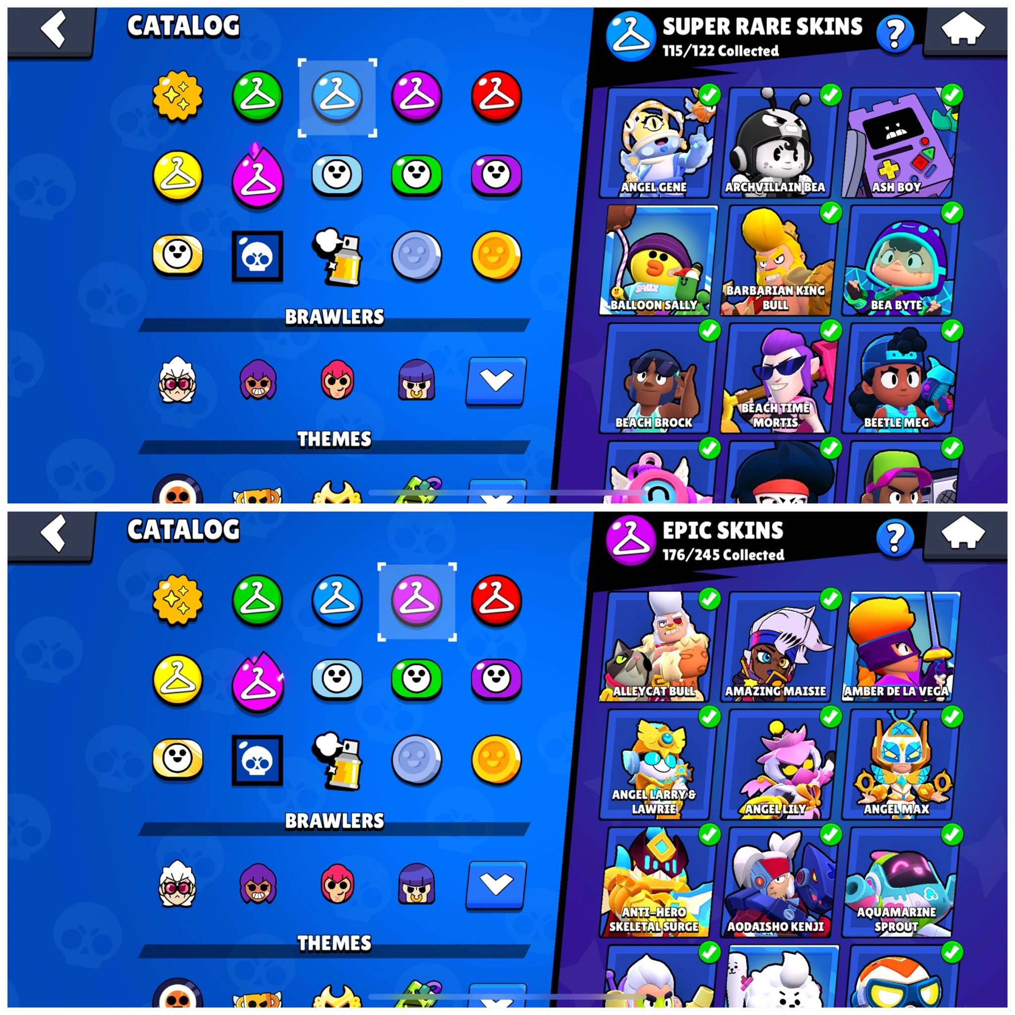 TOTAL: 393 SKINS✅BRAWLERS-91✅BRAWLERS-80 MAX & 59 HC✅80K TROPHY✅RARE-71. SUPER RARE-115. EPIC 176. MYTHIC-7✅ANDROID & IOS