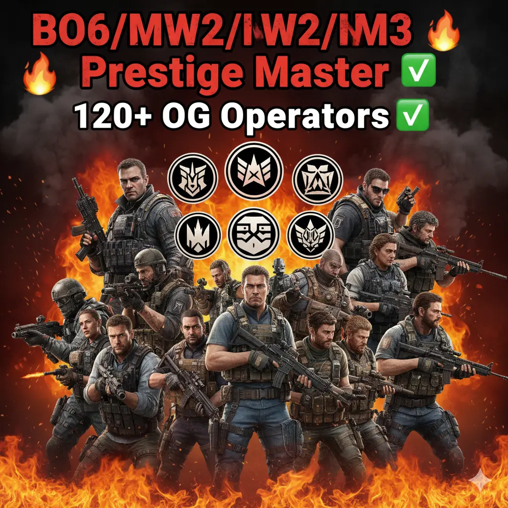 BO6/MW2/MW3 🔥 Prestige Master 246 LvL ✔️ 120+ OG Operators ✨ Many Old and Rare Things 🎶 Battle Passes 🎗️ Mw3 Prestige 16 ✨ Mw2 Prestige 17 👌 No Shadow Ban Histry 💕 Full Access 🎇 Link Able to all platform #nob1