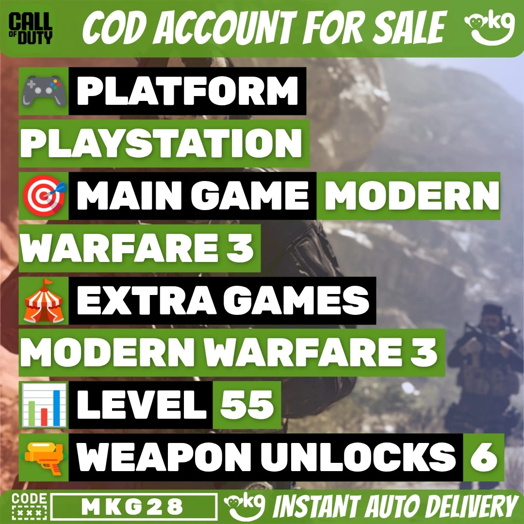 🔹 Playstation【MW3】 🪖 Level 55 ⚡ Ranked Ready 🔧 6 Guns Max | 🎮 PSN / XBOX / STEAM / BT Linkable | 🏅 Activision Account | 🔓 Full Access | ⚡ Instant Deliver !MKG28