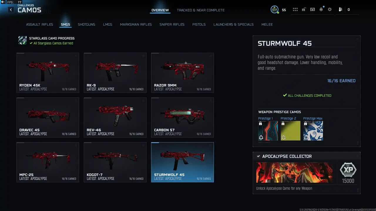 ✨ Prestige 2 + 30 Apocalypse✨ 10 Operators ✨ level 55 ✨ 30 Absolute Zero Camos, 30 Starglass Camo, 30 Golden Damascus Camos ✨ [STEAM/PSN/XBOX]