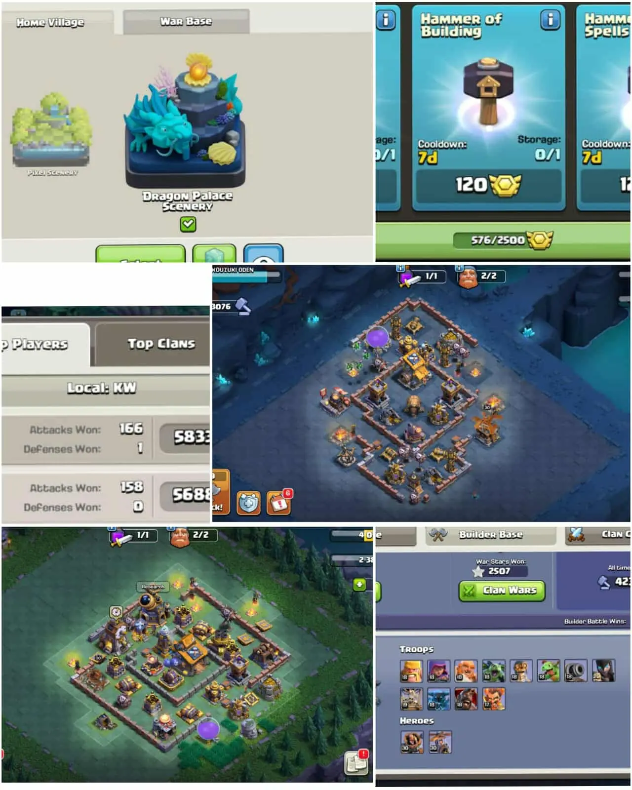 【14,000+ Gems】KW/Kuwait Local ➪Th17 Full Max ➪Hero's: 94-96-73-70-42 ➪Dragon Place Scenery ➪7 Epic ➪7 Skin ➪Full Access