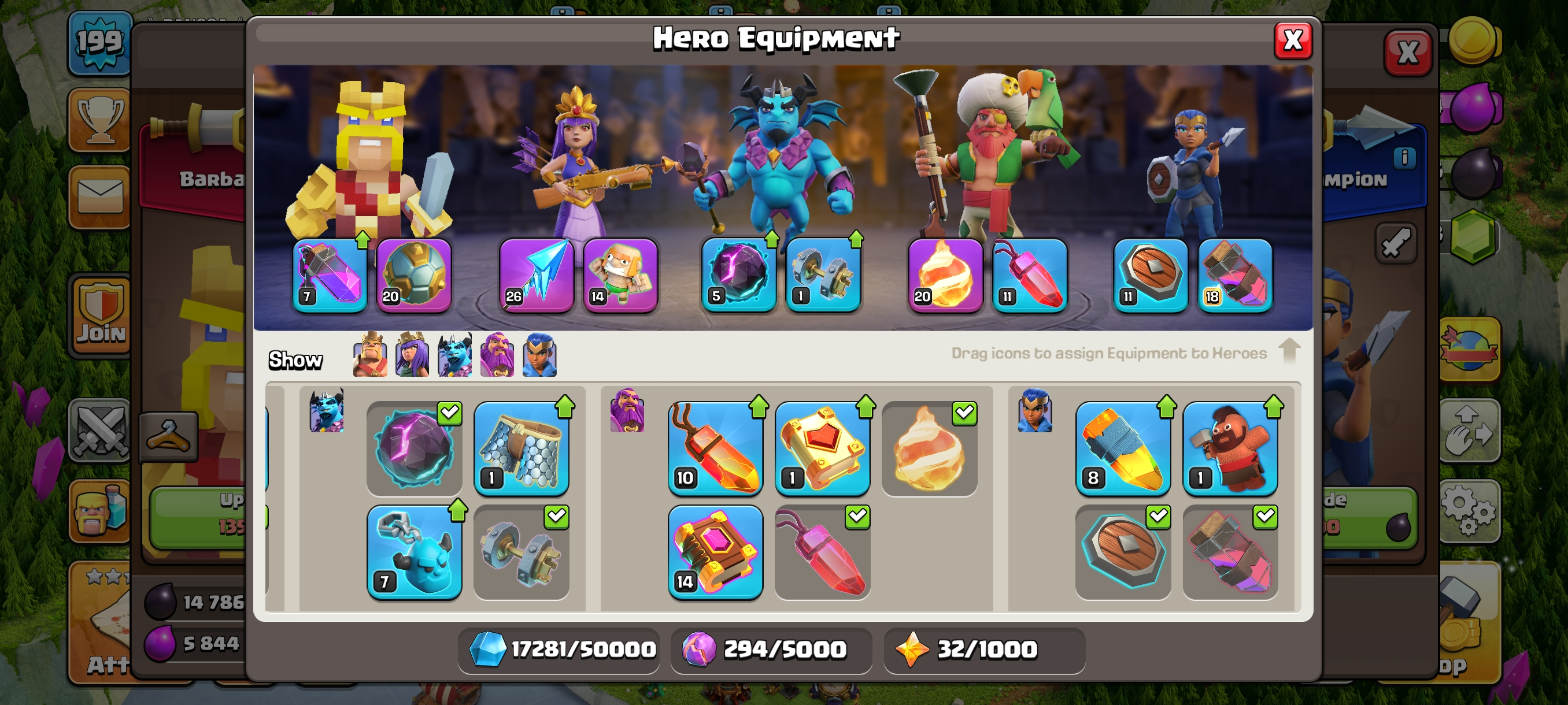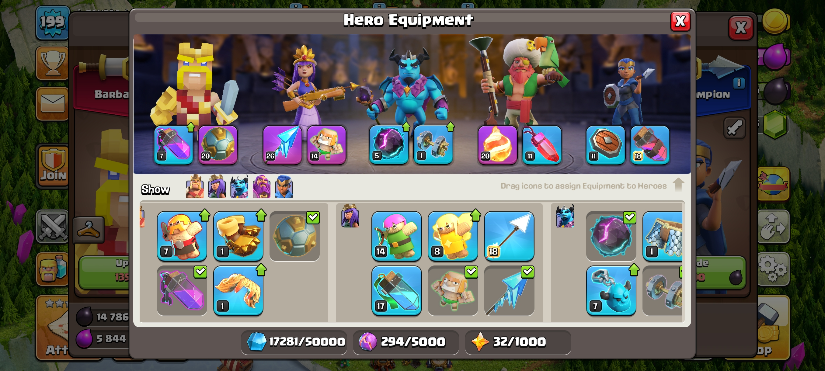 3X Epics Near Max-Th16 Same Max-Hero 64-95-70-47-33-Xp199-328 Madel-Magic Items-Main Defense Max Type-Nc 500-Full Access