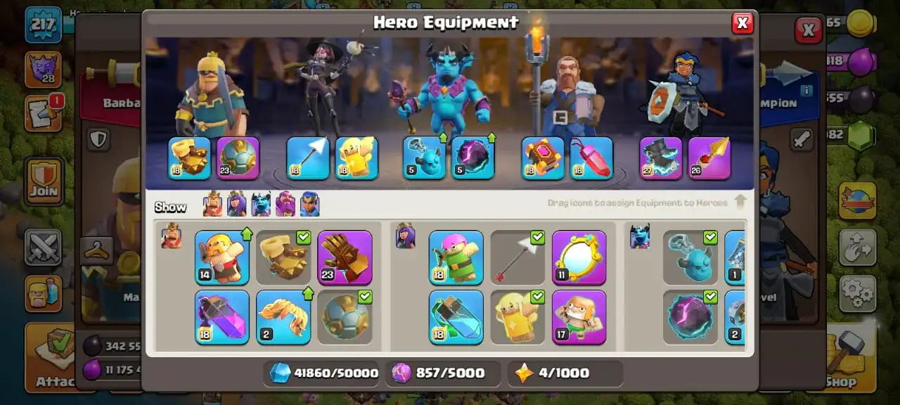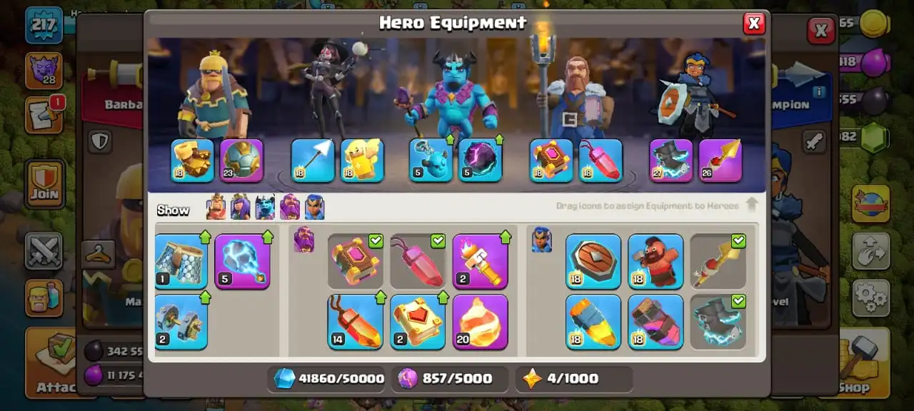 Big sale🔥TH 17 almost max🔥max heroes☠️max electro boots🔥max pets⚒️6 builder’s✅cn on✅7 heroes skin
