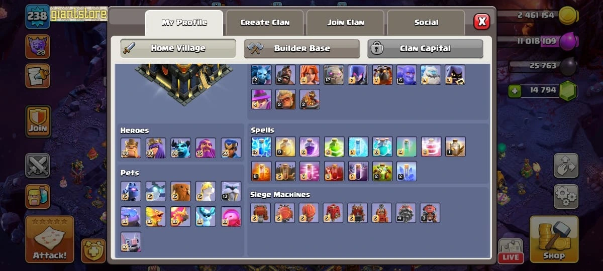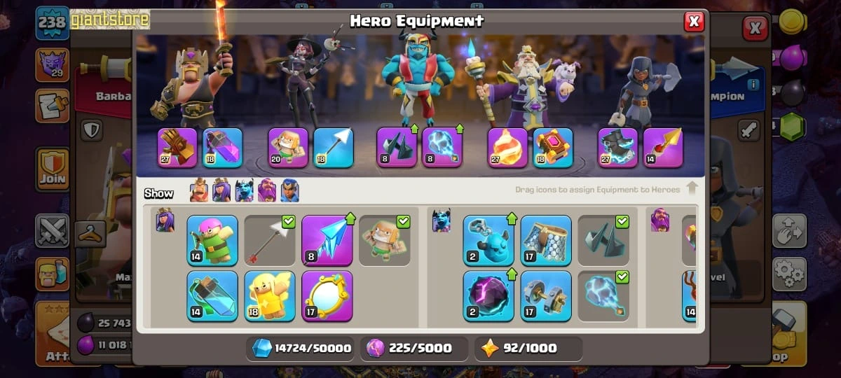 BIG SALE🔥TH 17 almost max🔥max heroes🔥max pets☠️3 max epic equipment⚒️max builder base💎14K GEMS⭐️483 cwl medal✅2 scenery and 18 heroes skin