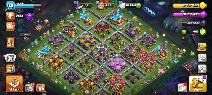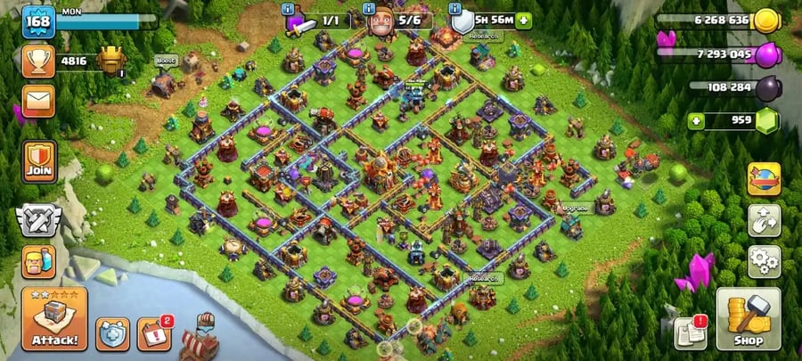 Big sale🔥TH 17 max defense🔥high heroes level 87/100/70/75/43⚒️6 builder’s☠️max spiky ball and magic mirror✅free name change✅6 heroes skin