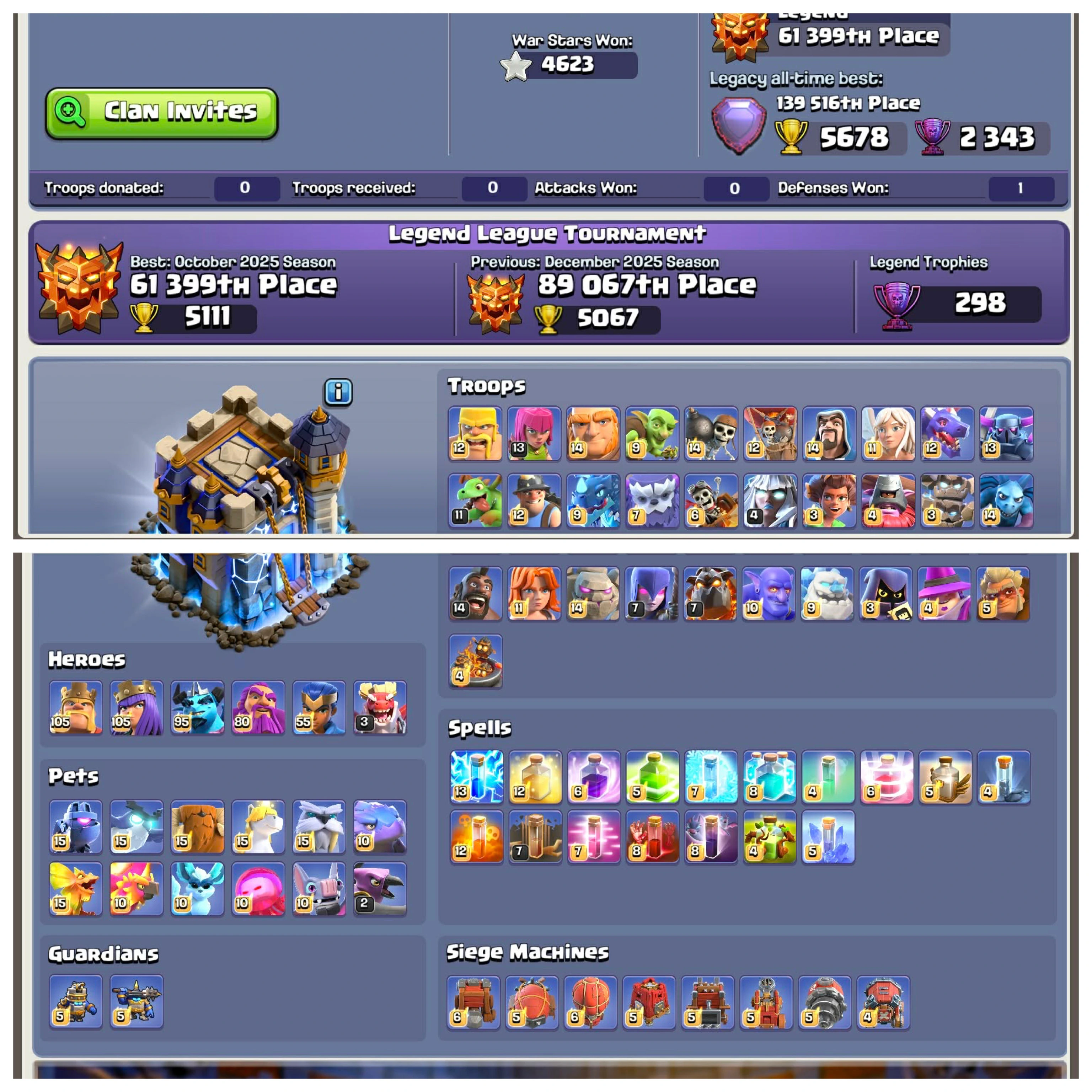 Blacksmith Maxed🌹TH 18 Max Almost🌹All Equipments Maxed🌹Guardians Max🌹Defense Max Almost🌹High WarStars🌹th18 near max