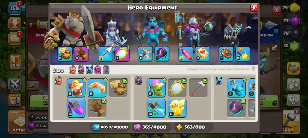 Cheapest🔥TH 14 semi max🔥heroes level 64/73/47/41/26☠️2 epic equipment✅5 heroes skin⚒️all helper opened