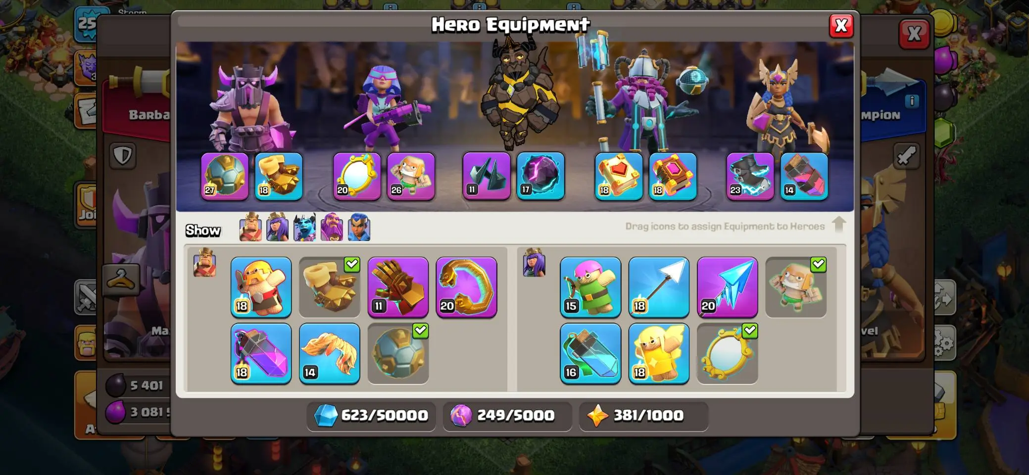 🔥 FRANCE LOCAL 🔥 TH 17 NEAR MAX 🫥 ALL 5 HEROS FULLY MAXED OUT 😳 59 HERO SKINS 🔥 10 EPICS EQUIPMENT ✨ CHEAPEST IN MARKET 👐❤️