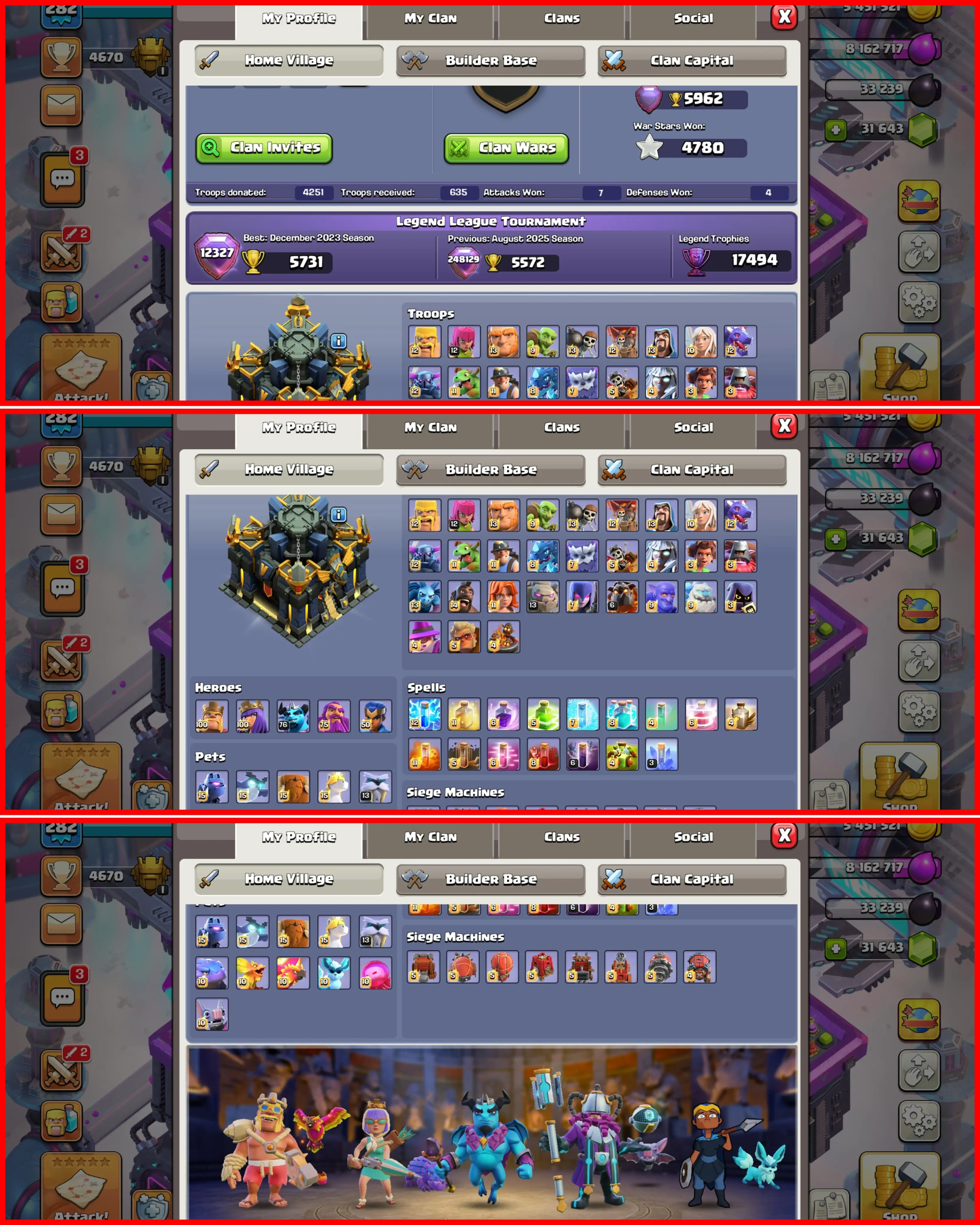 Full Max Th 17 | Ready For Th 18 | 32000 Gems | 1800 Medels | Magic Items full | 30 Skins | 3 Paid Sceanrys | Almost 8 Epic EQ Max | 283 High Xp | 4800 War Stars | 18000 Legend trophy | Builder Base Full Max | Best for Th 18