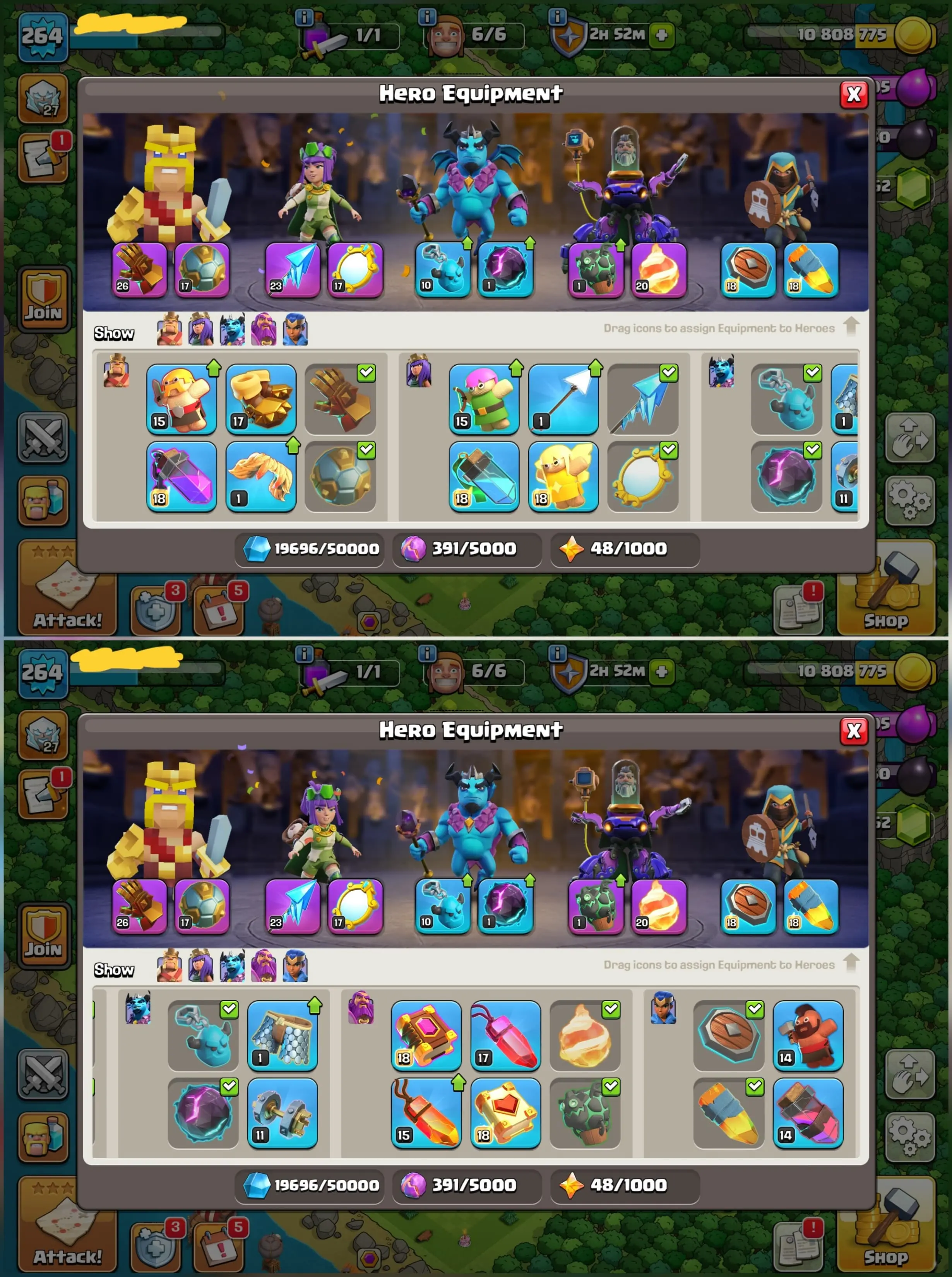 🏆 [ HIGH WARSTARS ] 💪 CRAZY TH17 ⚡ XP 264 [V.HIGH] ⚔️ 6 EPIC EQUPMENT 👑🦸♂️ 8 HEROES SKINS ⭐ 4.6K WARSTARS 🔄 NAME CHANGABLE ⚡ INSTANT DELIVERY