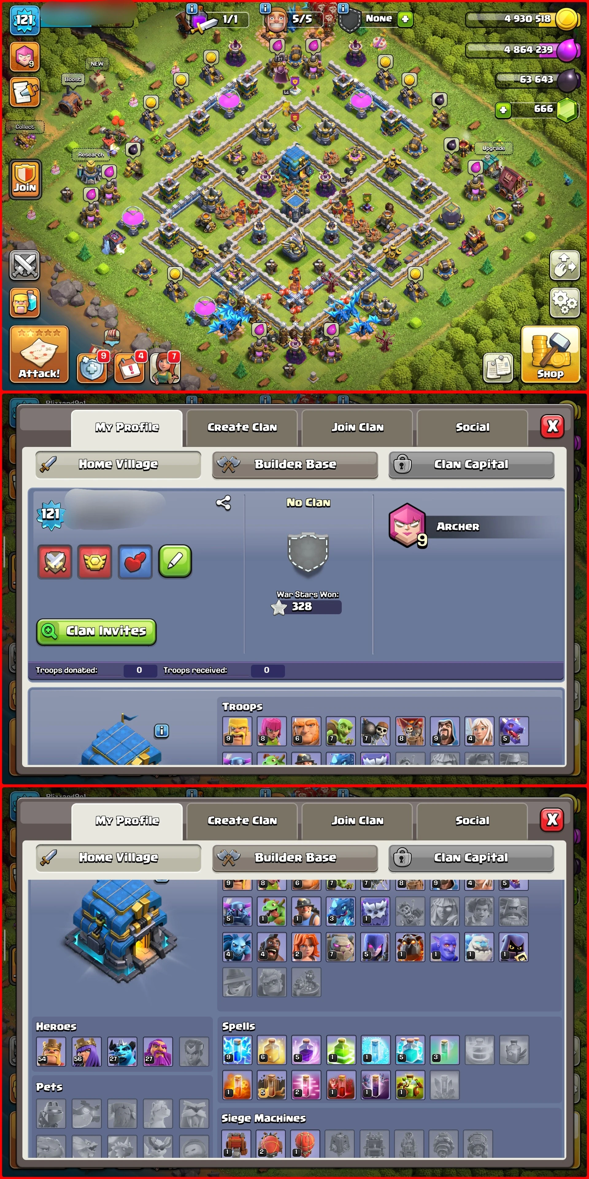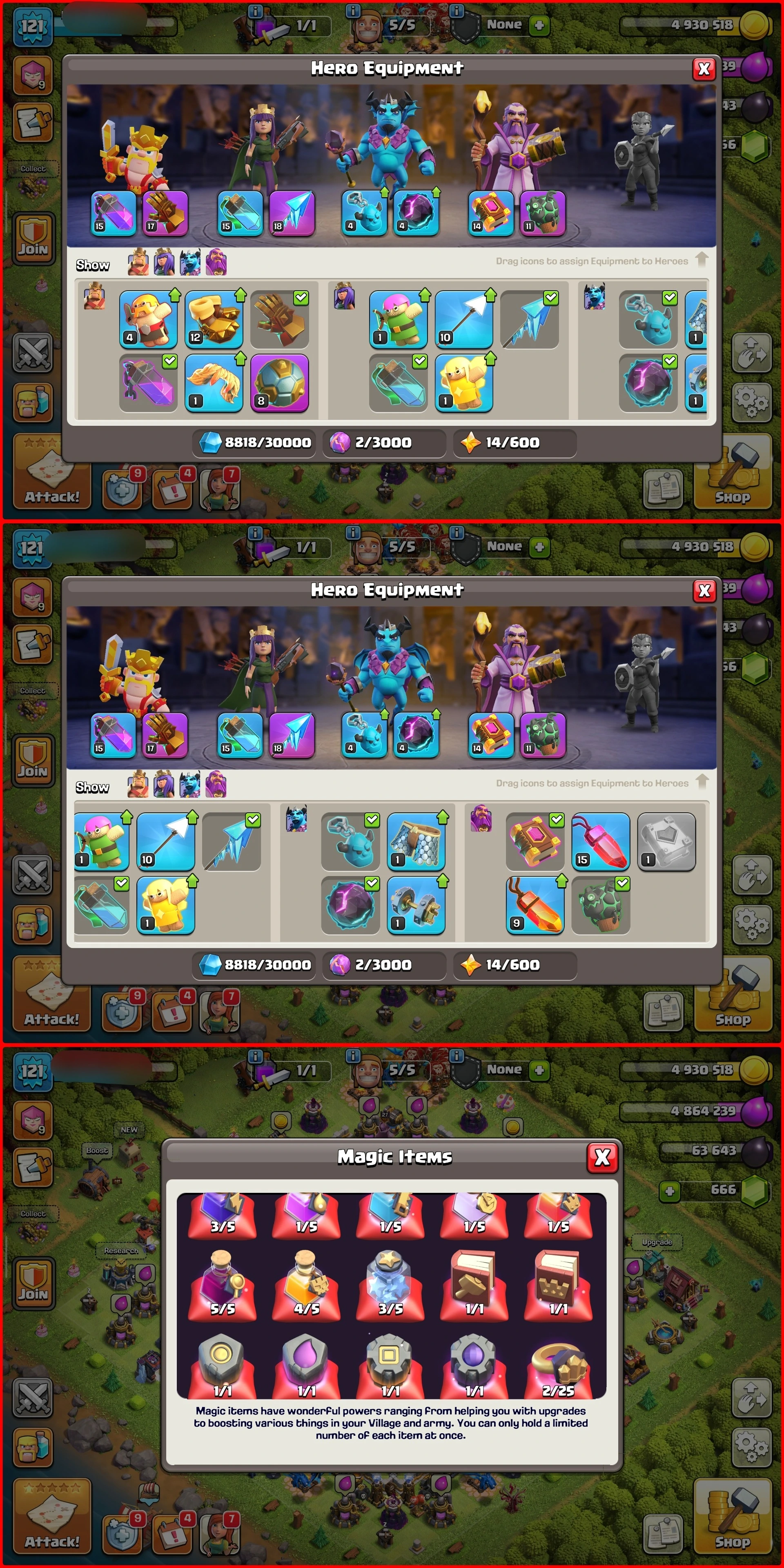 IMMENSE SEMI MAX TH12 | Heavy Defenses & Troops | 54/56/27/27 | 4 Epics Avbl & Piled Magic Items | 500 NC | RB341