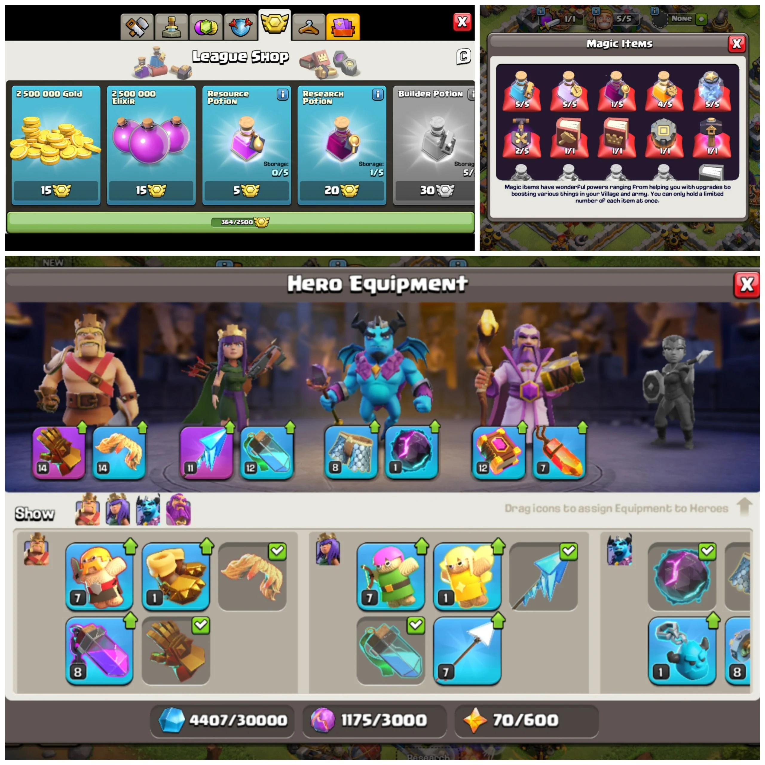 ✨[🔥NEW TH12]✨⚔️2x EQUIP’S | ⭐️126 XP | 🎁MAGIC ITEMS | 💎293 GEMS🦸♂️HERO’S: 👑53 | 🛡️51 | 🔥34 | 🌟21🏅364 CWL MEDALS⚡️QUICK DELIVERY✅