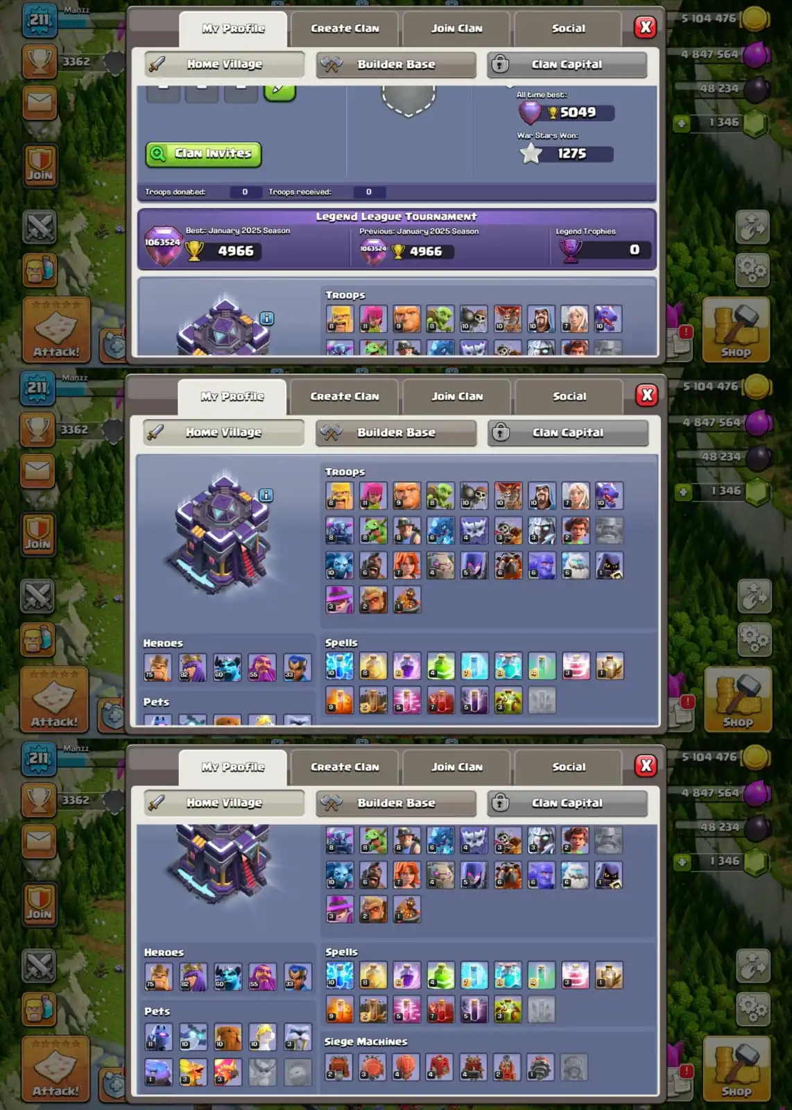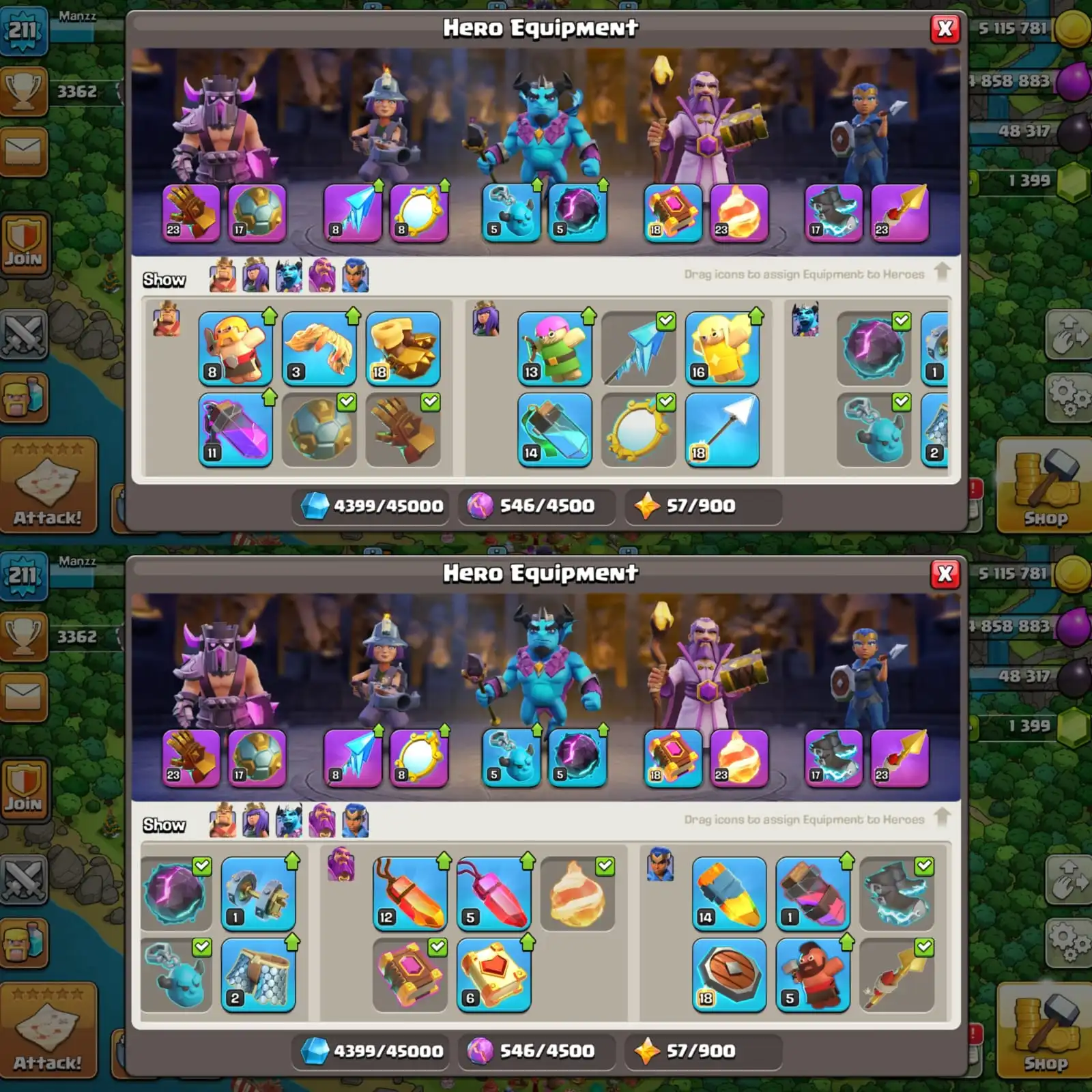 ✨ Obstacles-145++ ✨ Th15 Near Max ✨ Huge Decorations ✨ Hero:75-85-60-55-35 ✨ Huge Items ✨ Good Army,Pets ✨ Full Access ✨