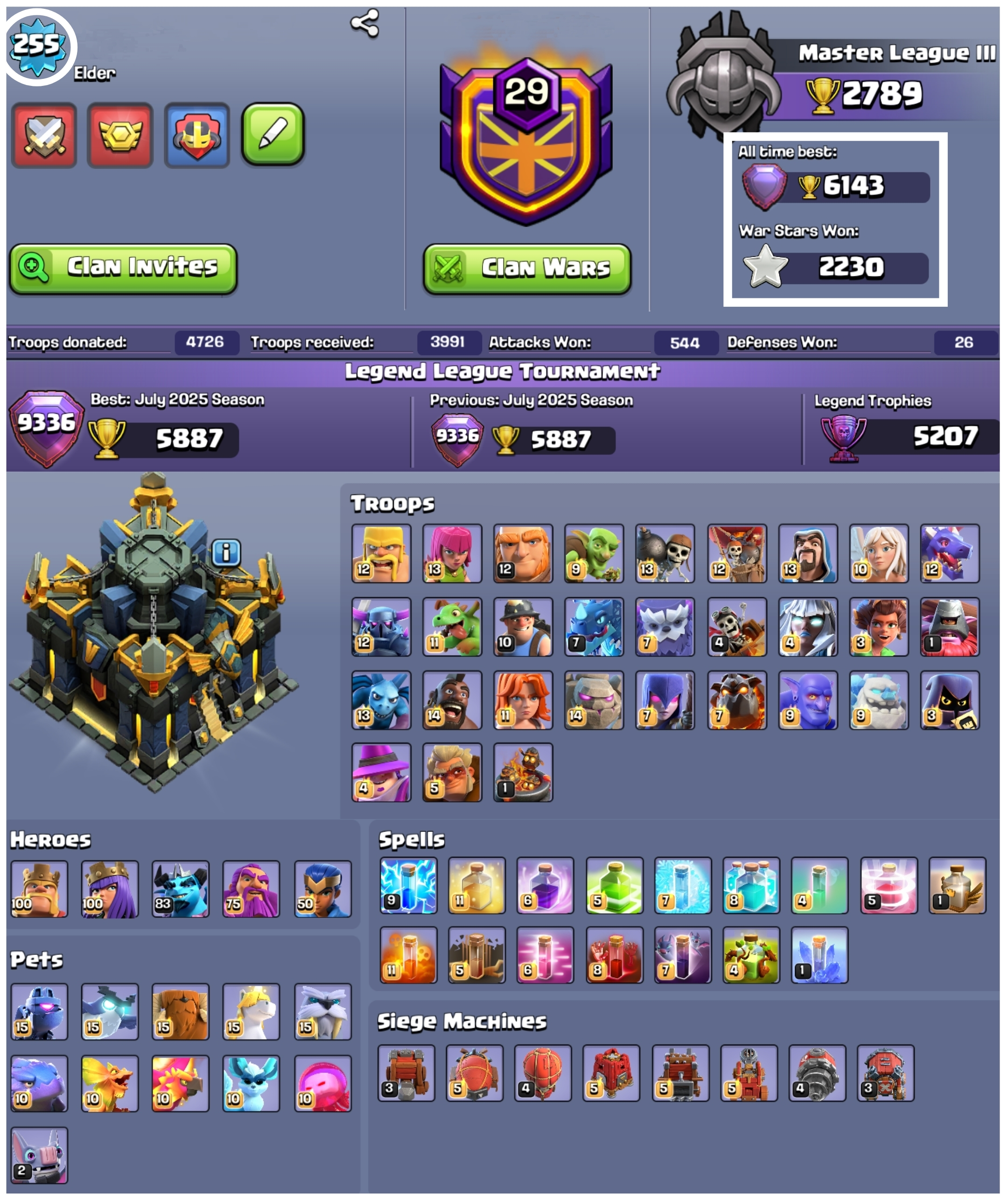 🔥PREMIUM A/C 💥GOLD PASS ACTIVE♨️ TH 17 PURE MAX 🔥 21 MAX EQUIPMENT ⚡ 10 EPIC EQUIPMENT { GG , SB , SB , FA , MM , AF , LP , FB , RS , RS } 💕 MAX HEROES ❄️ ATB 6.1K 🏆 CHECK DESCRIPTION ❤️ FAST DELIVERY 🚚