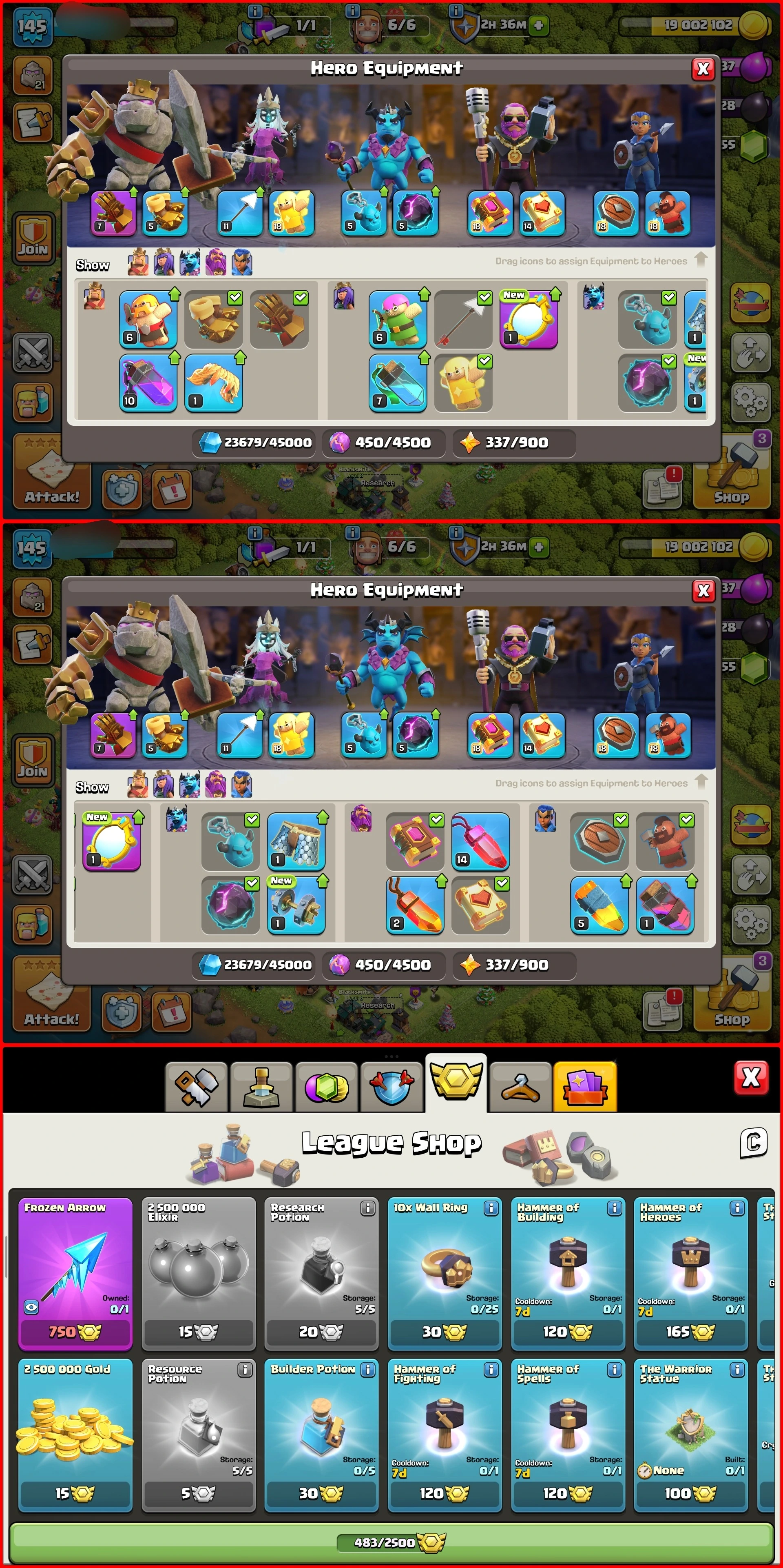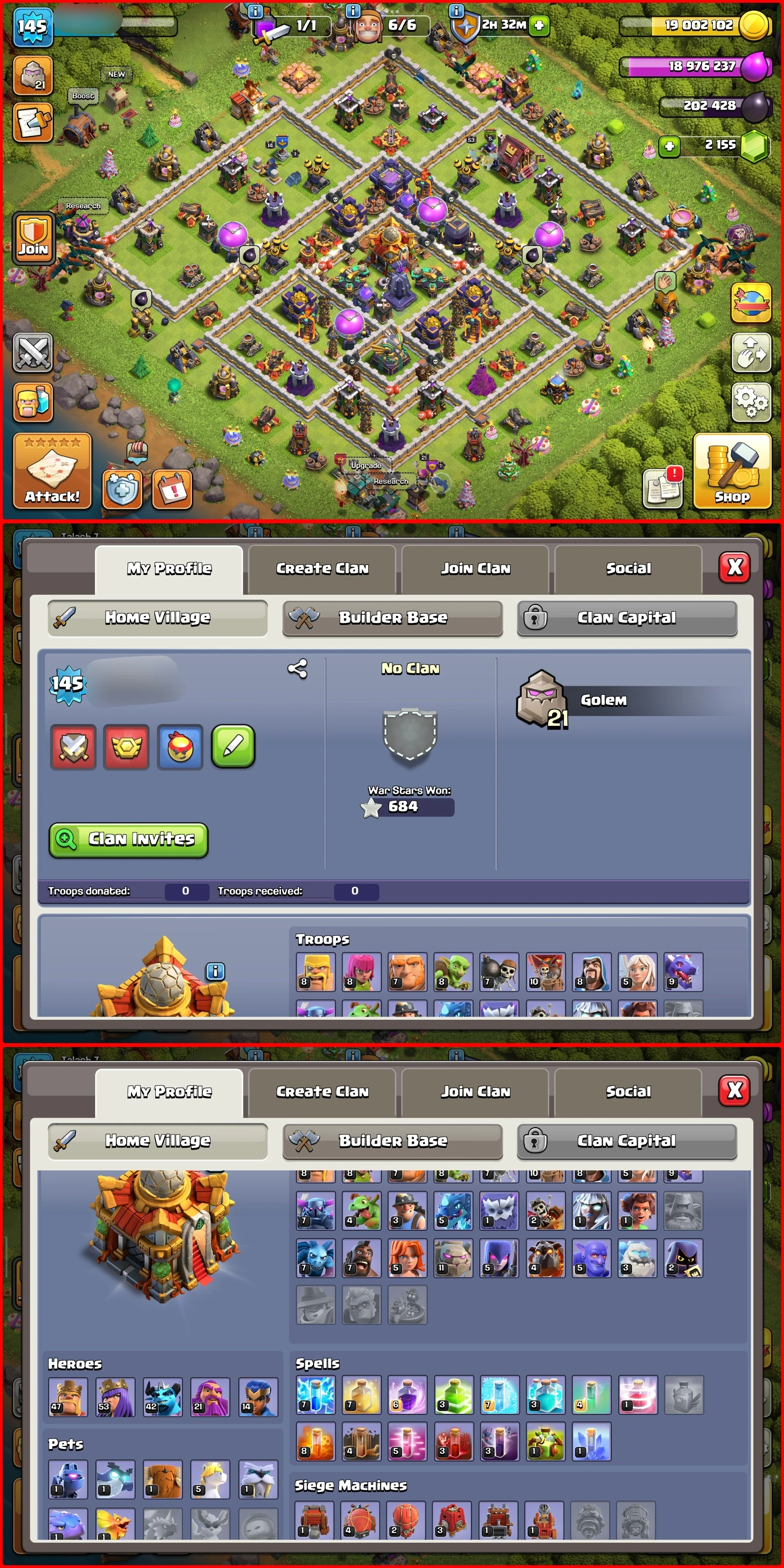 PRIME PICK DONATION TH16 ACCOUNT | 47/53/42/21/14 | Lofty Abilities & Defenses | Piled 483 CWL Medals, 2K+ Gems & Magic Items | 1K NC | RB323
