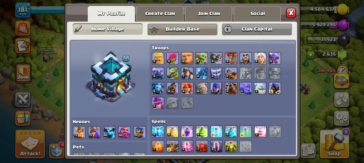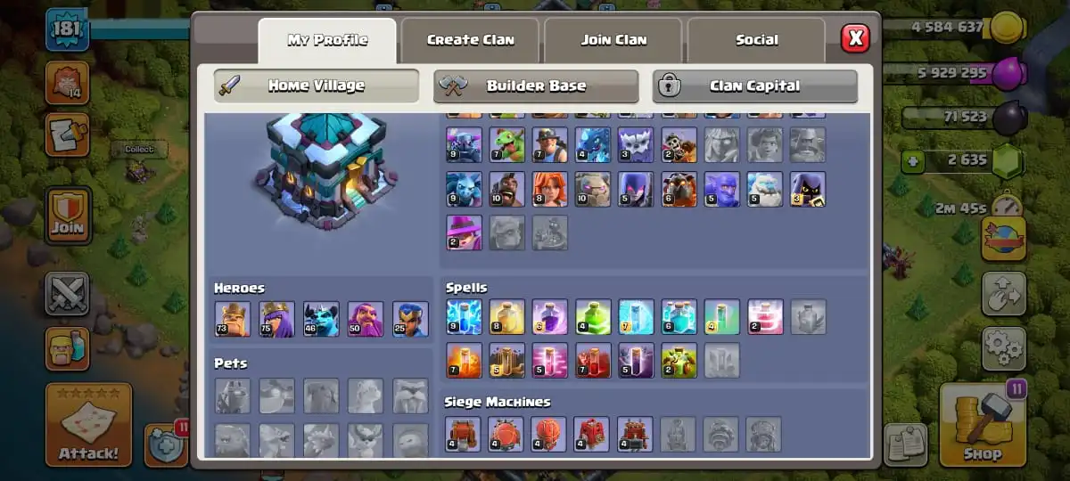 TH 13 DEFD & TROPS MAX🔥HEROES 73-75-46-50-25 GIANT GAUNTLET & MAGIC MIRROR ON🔥FIRE BALL & ROCKET SPEAR ON🔥MAGIC ITEMS READY🔥FULL ACCESS ACCOUNT🔥