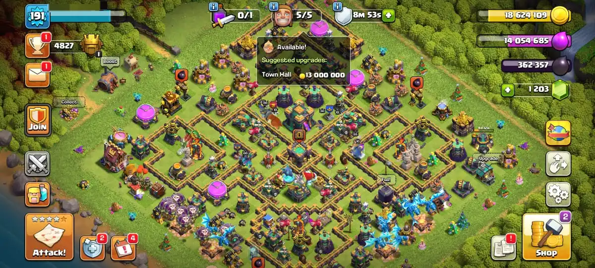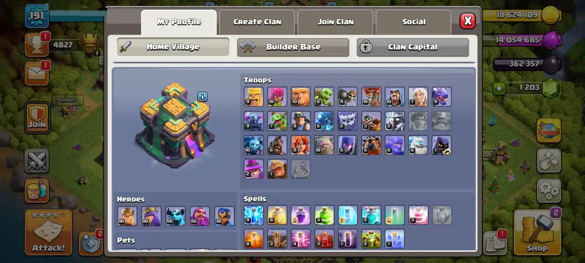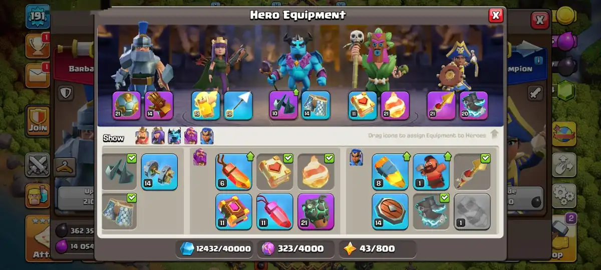 TH 14 FULL MAX🔥HEROES MAX 80-80-60-55-30 GIANT GAUNTLET & SPIKY BALL & FIRE BALL & ROCKET SPEAR ON🔥MAGIC ITEMS READY🔥MENDALS 108🔥JUNGLE & CLASH A RAMA SCENERY🔥FULL ACCESS & GUARANTEED🔥