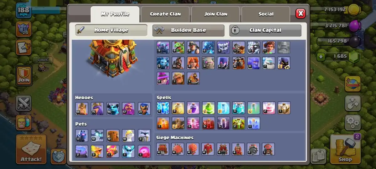 TH 16 ALL MOST MAX🔥HEROES 66-75-46-57-21 GIANT GAUNTLET & SPIKY BALL & MAGIC MIRROR & FIRE BALL & ROCKET SPEAR ON🔥MAGIC ITEMS READY🔥JUNGLE & PIXEL & CLASHRAMA & MAGIC SCENERY🔥FULL ACCESS ACCOUNT🔥