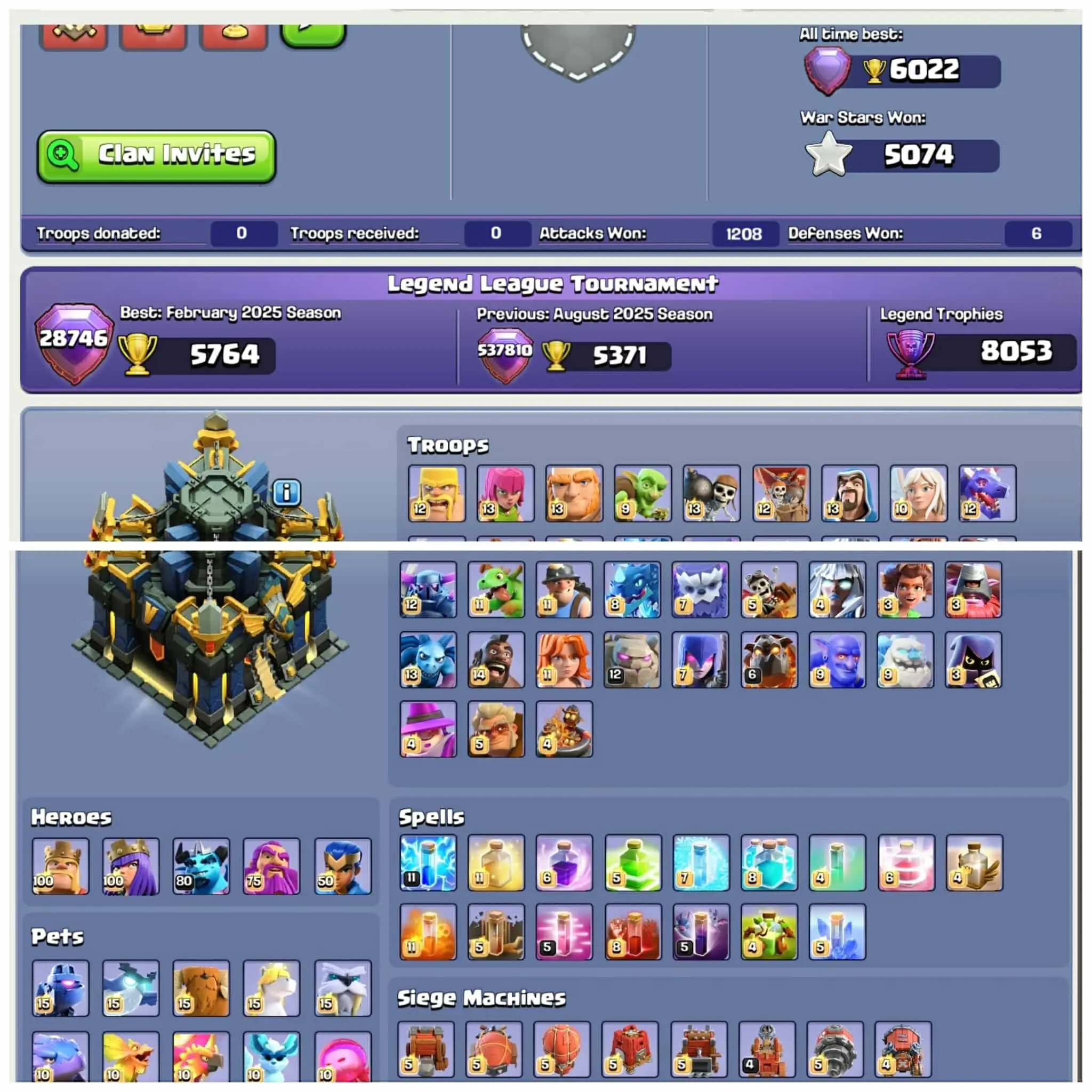 TH 17 ✅99% MAX✅All Max Equipment✅Max Hypercharge🔥Heros: 100/100/80/75/50🌟Max Builder Hall🌟Good Hero Skin[FAST DELIVERY]
