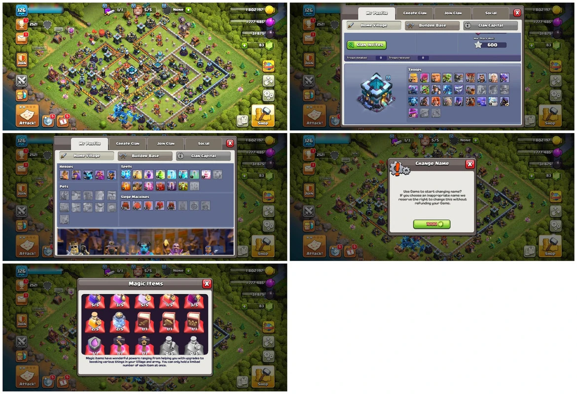 TH13 Semi Max 🧩 Level 126 🧗♂️ Heroes 45_50_41_32_13 📊 4 Skins 🛠️ Nc 1000 Gems (Android & iOS) 🔩 M3582