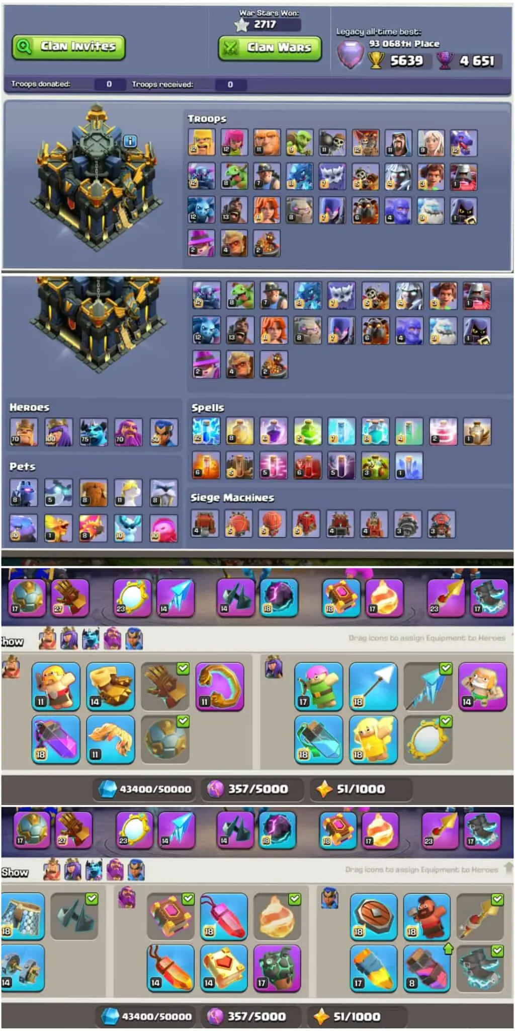 Th17 Max Account✮Heros 70-100-75-70-50 【11 Epic】➠Max Defense ~7500+ Gems ~12 Skin ~Full Magic Item ~Full Access