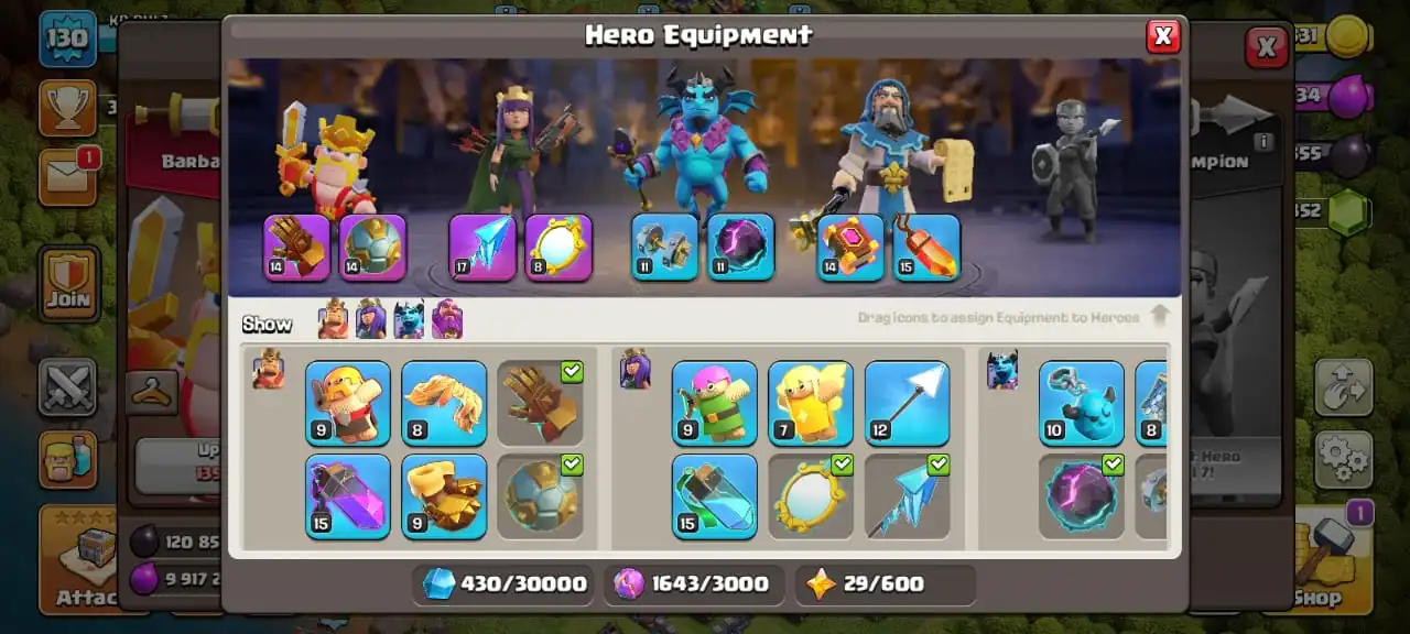 Town hall 12 full max🔥max heroes🔥max troops☠️4 epic equipment✅2 heroes skin