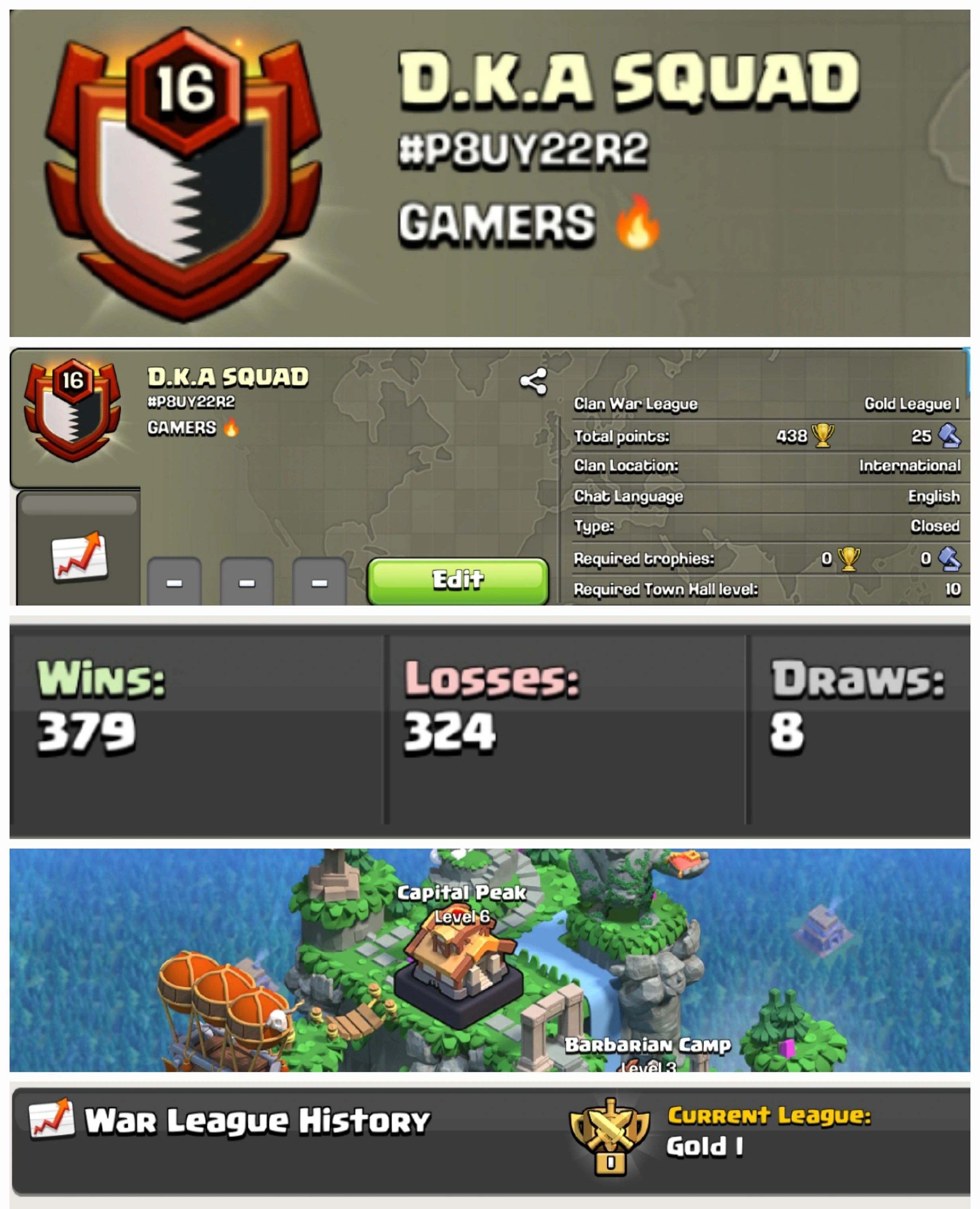 D.K.A SQUAD !! LEVEL 16 !! WIN 379 LOSS 324 !! CAPITAL PEAK 6 !! GOLD 1 !! GOOD NAME !! AFFORDABLE !! INSTANT DELIVERY