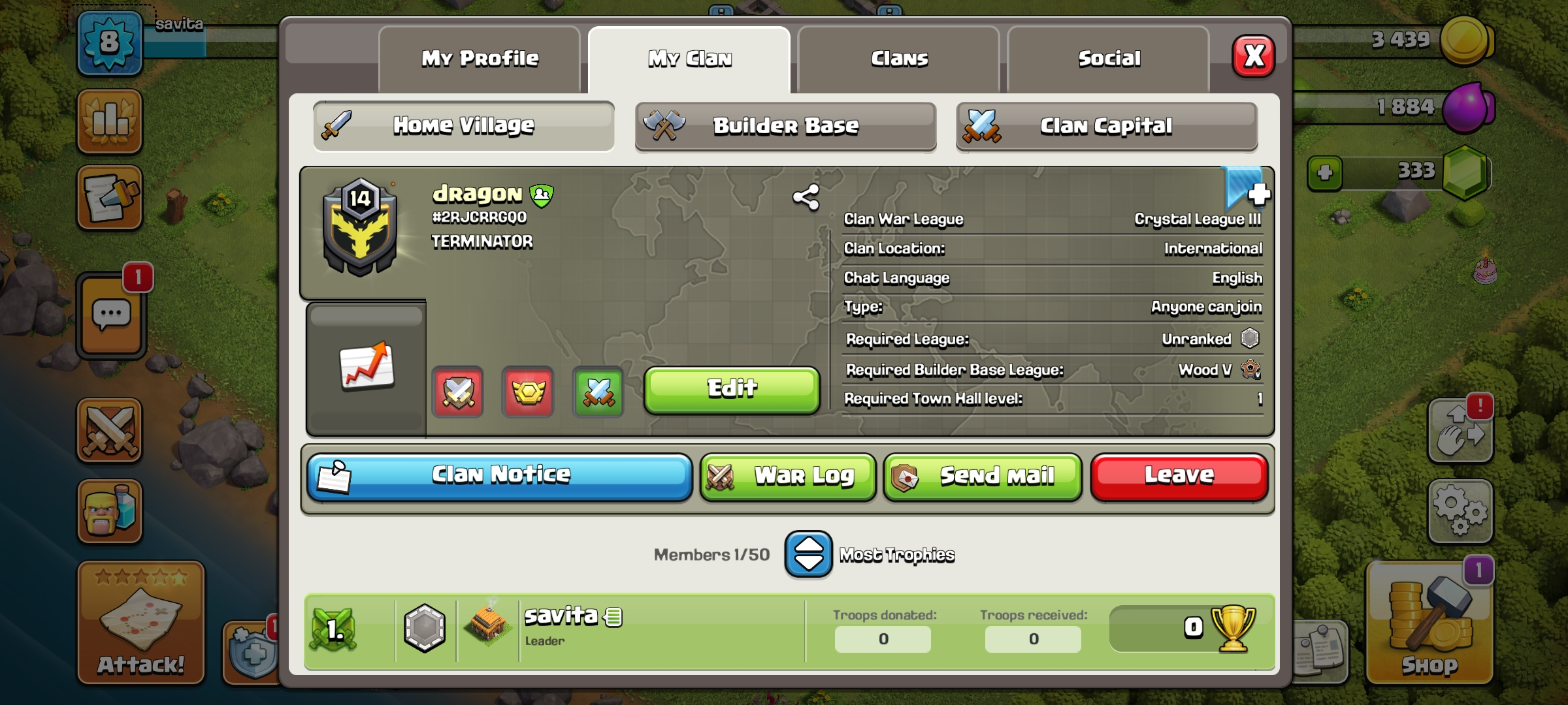 Level-31 🔴 Team Canada 🔴 Crystal 1 🔴 Clan Capital 10 🔴 808 : 663 Positive Log 🔴 Fast Delivery