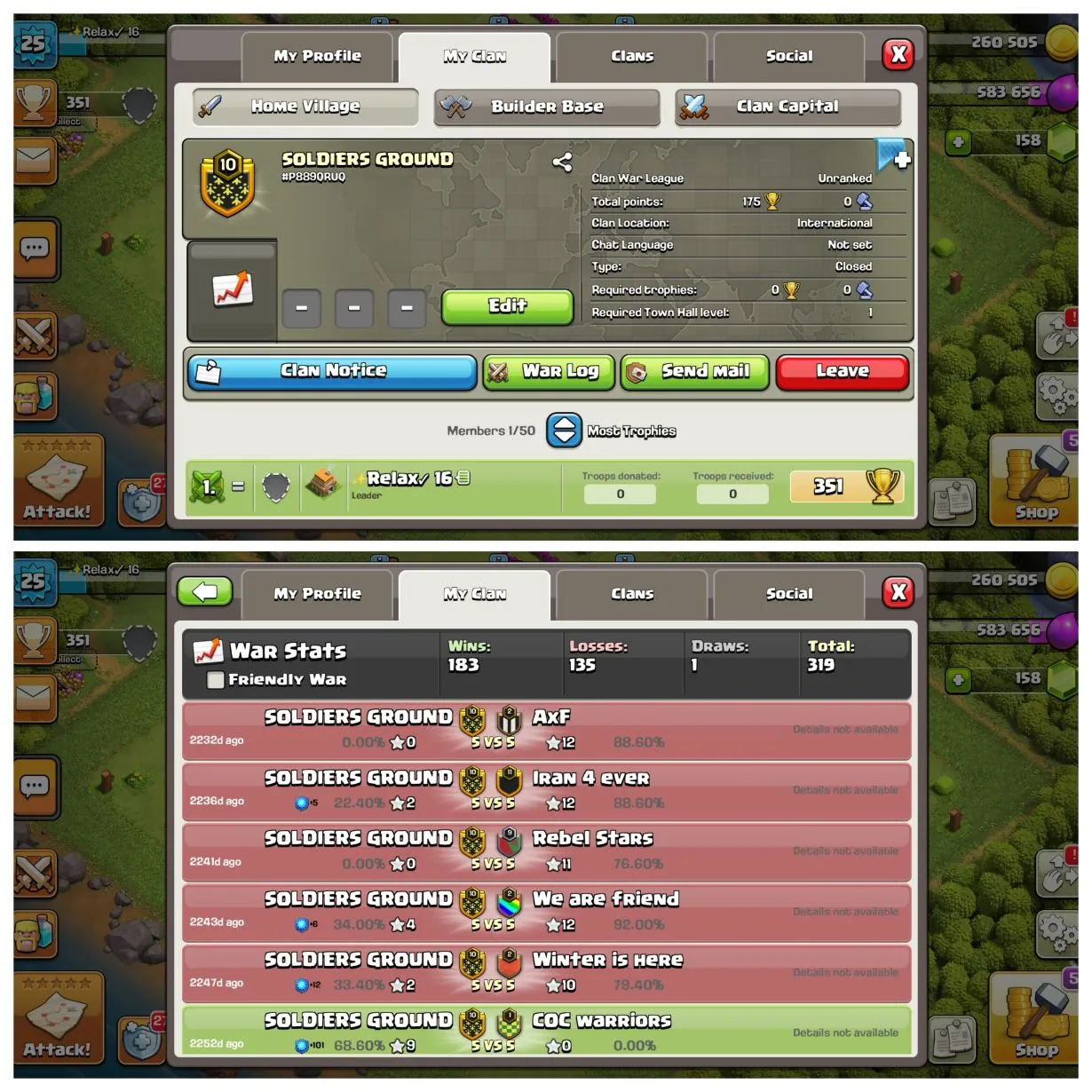 LEVEL 29//CLAN NAME HERO//MASTER 1//CLAN CAPITAL 10 FULL MAX 3331// WAR WIN 513