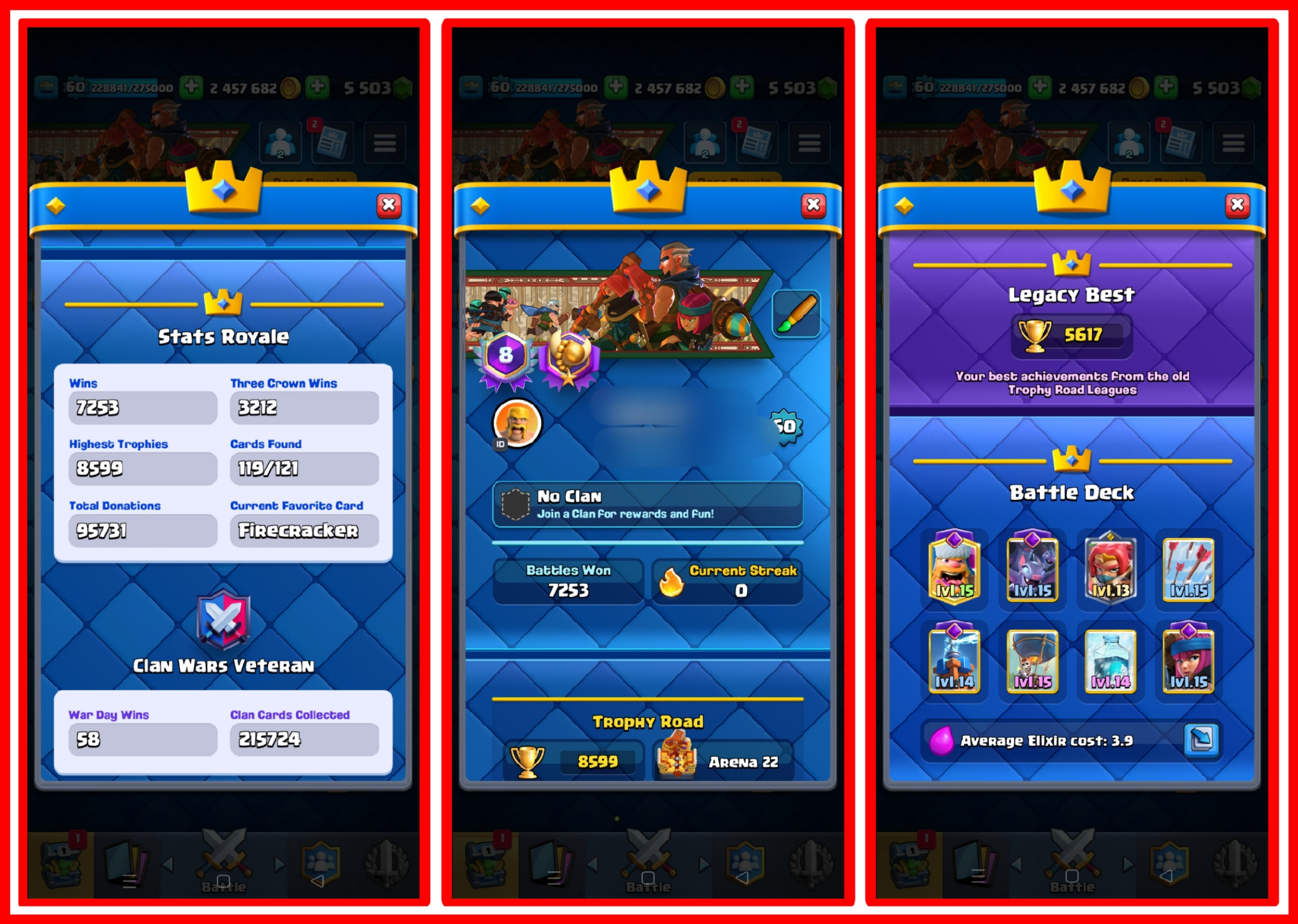 2.4M GOLD🤯17 EVOLUTION CARDS✨100 MAX CARDS🤩23 ELITE CARDS☠️LEVEL 60🚀8599 TROPHIES🏆ARENA LEVEL 22❤️KT LEVEL 15☠️FREE NAME CHANGE💎CHEAP PRICE💸 INSTANT DELIVERY☑️ANDROID & IOS☑️#FZ