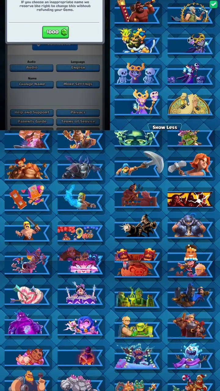 🥶 63.5 XP 🤩 105 CARD MAX 🙀 36 ELITE 🧨 GOBLIN KISSING EMOTE 🤩 THE BEST RARE EMOTE SKIN TOWER 😈 9 YEAR ACCOUNT 🏅 CHANGE NAME 1000 💀 9100 TROPHIES 🏆 INSTANT DELIVERY 🚚