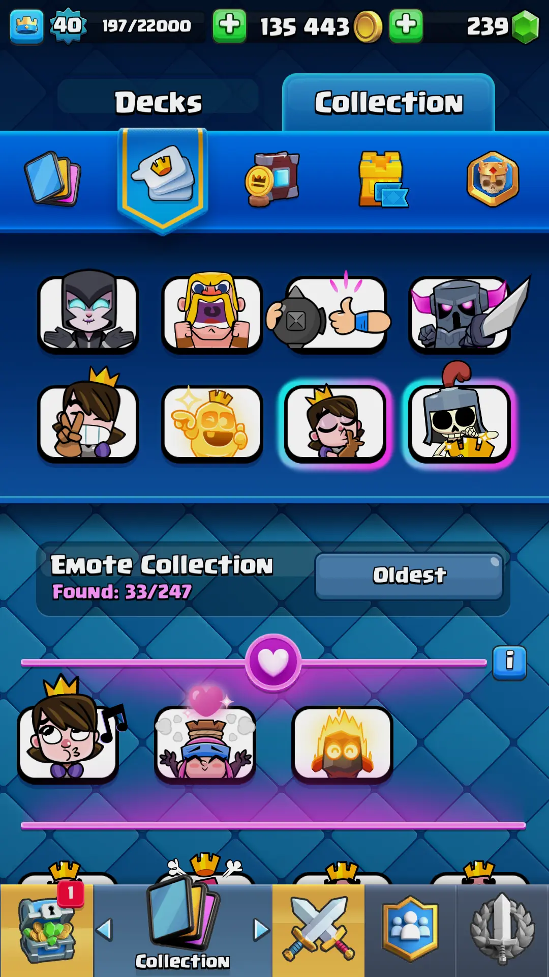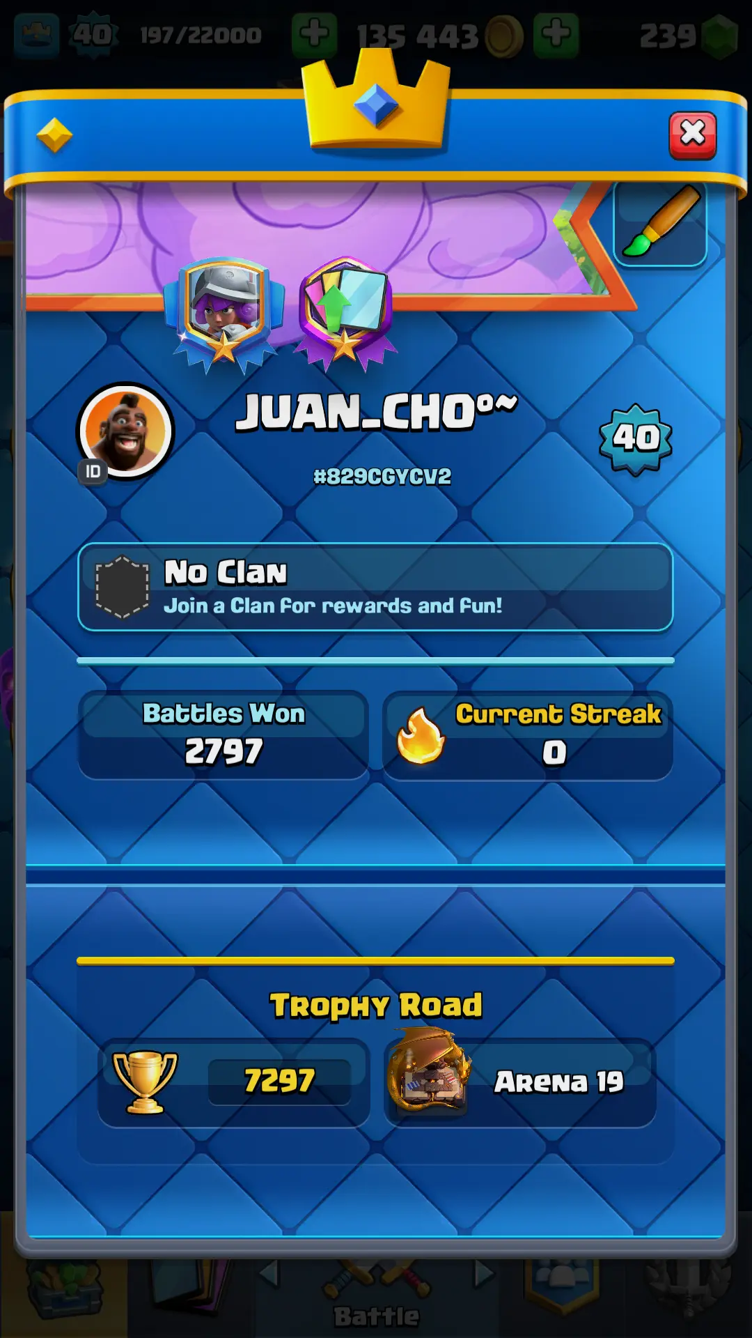 7297 TROPHY 🏆 13 KT 🚀 LVL 40 👑 117 CARDS 🍉 1 MAX CARDS 👑 0 ELITE CARDS ⚡ 33 EMOTE 🚀 EVO 2 🎭 #829CGYCV2 ⸱ TAG ACCOUNT ♥️