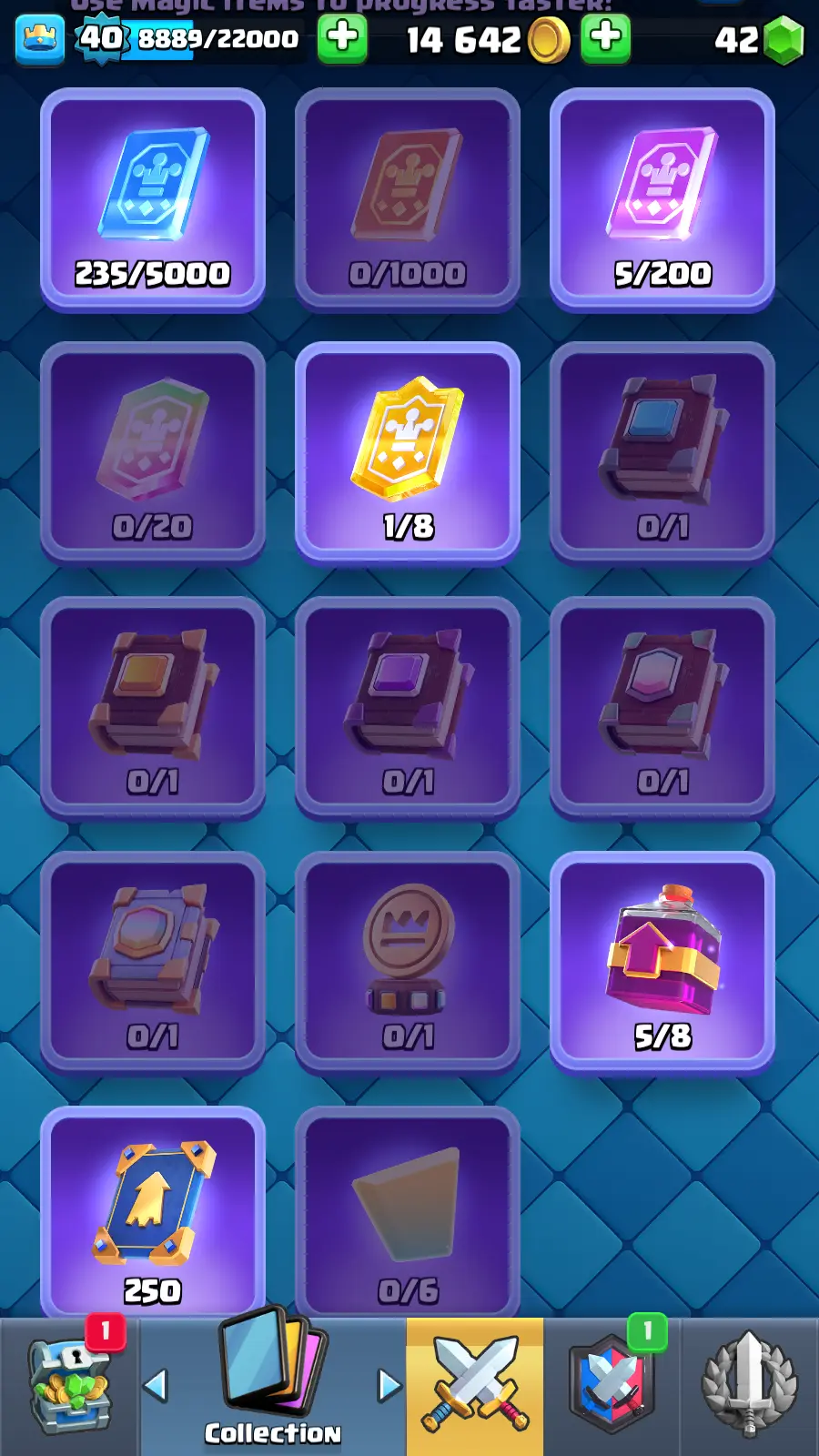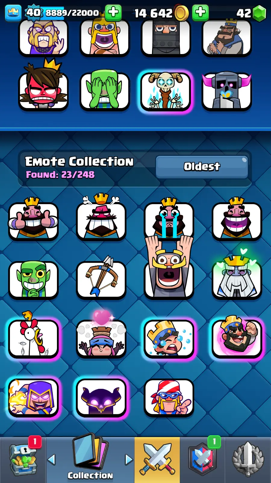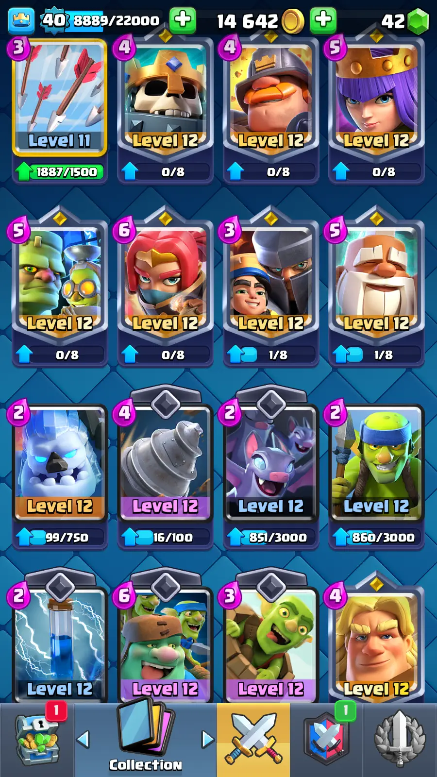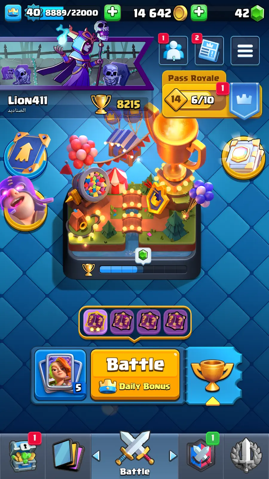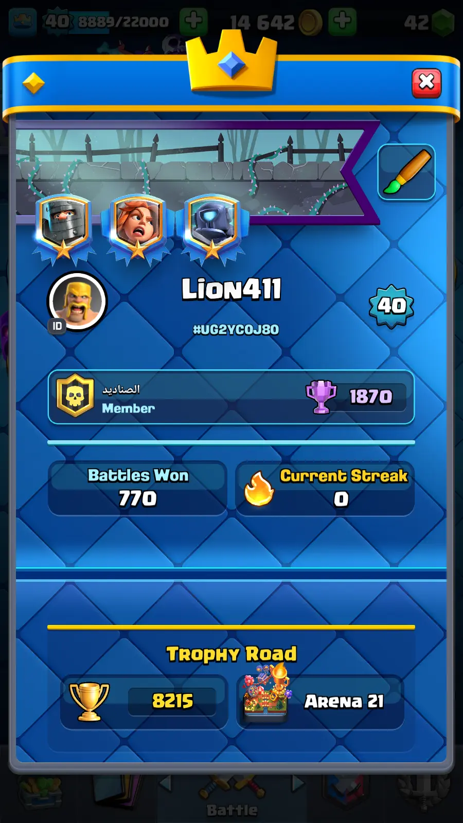 8215 TROPHY 🏆 13 KT 🚀 LVL 40 👑 120 CARDS 🍉 2 MAX CARDS 👑 0 ELITE CARDS ⚡ 23 EMOTE 🚀 EVO 10 🎭 #UG2YC0J80 ⸱ TAG ACCOUNT ♥️