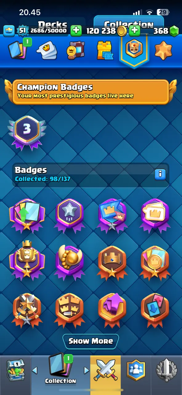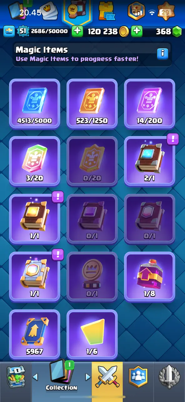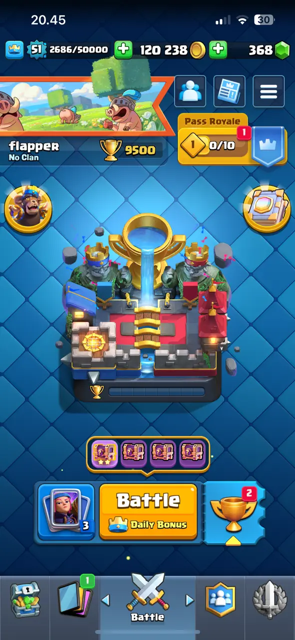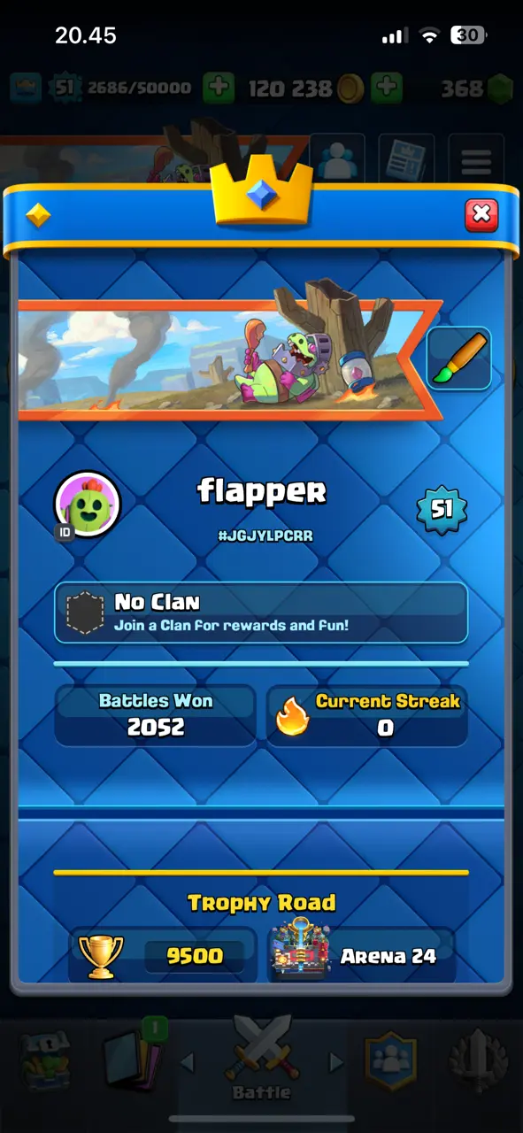 🔥 CHEAPEST 🔥 CR Lv.51 🔥 Free Change Name 🔥 Arena 24 🔥 9500 Trophies 🔥 KT 14 🔥 9 Evo Card 🔥 16 Max Cards & 2 Elites 🔥 55 Emotes 🔥 7 Tower Skins 🔥 [F2605] 🔥