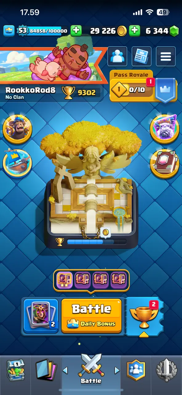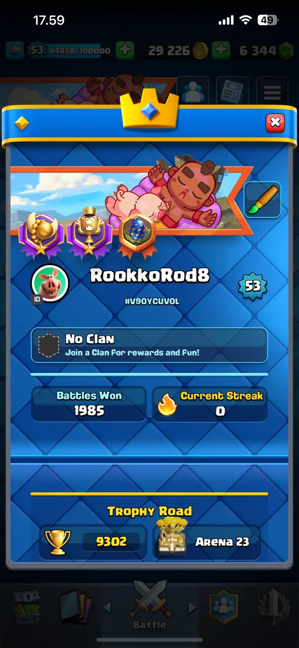 🔥 CHEAPEST 🔥 CR Lv.53 🔥 Change Name ON 🔥 Arena 23 🔥 9302 Trophies 🔥 KT 14 🔥 13 Evo Cards 🔥 33 Max Cards & 5 Elites 🔥 51 Emotes 🔥 8 Tower Skins 🔥 [F2646] 🔥