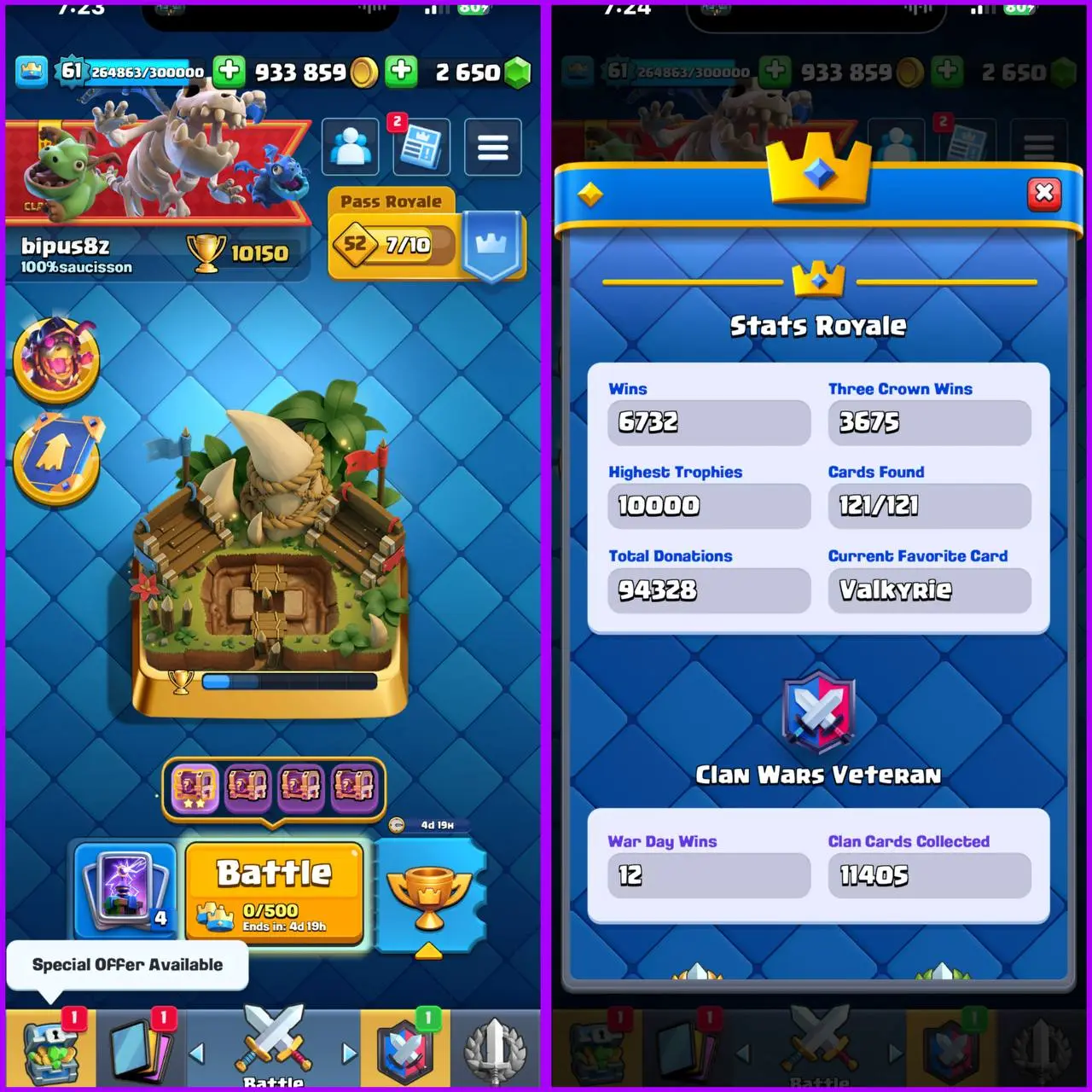 🔥 CR 61 EXP 🔥 ARENA 24 🔥 KT 15 🔥 29 ELITE 🔥 100 MAX 🔥 15 EVOLUTION CARD 🔥 85 EMOTES 🔥 CHEAPEST IN MARKET 🔥
