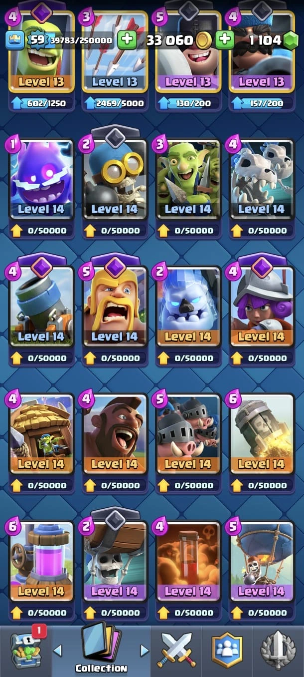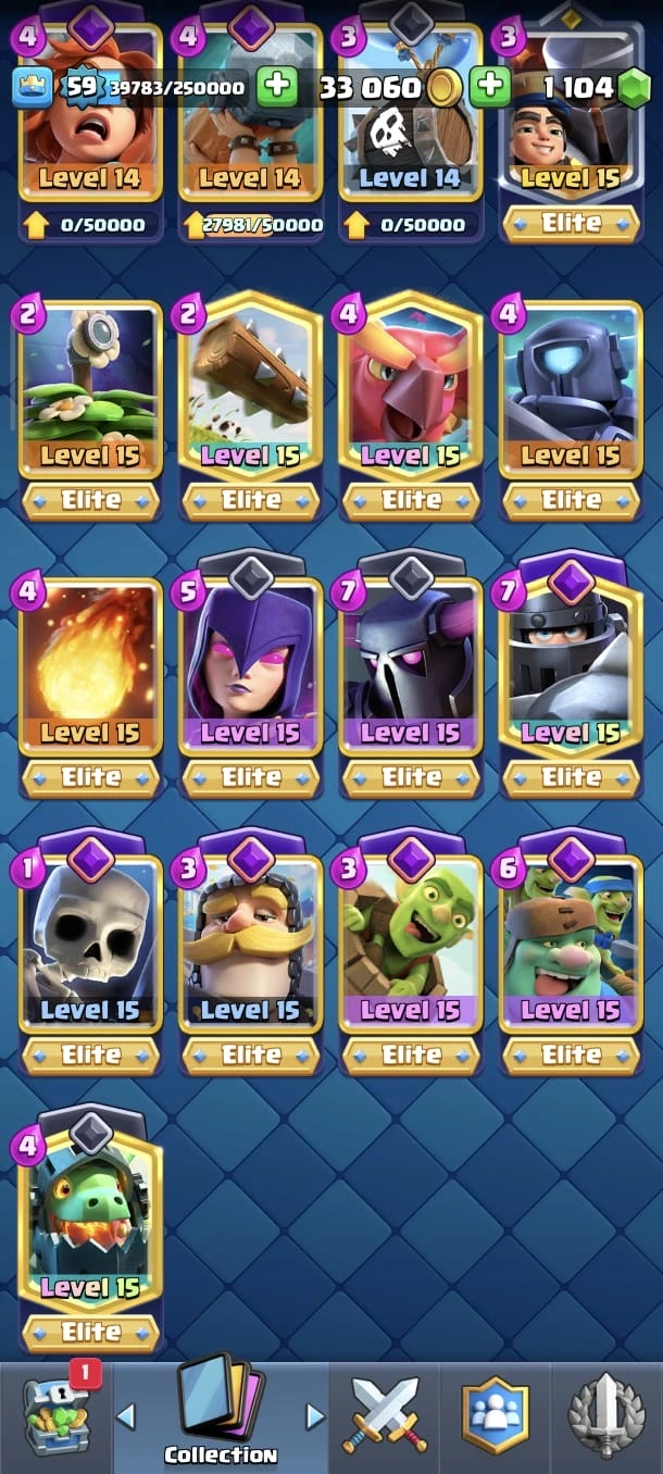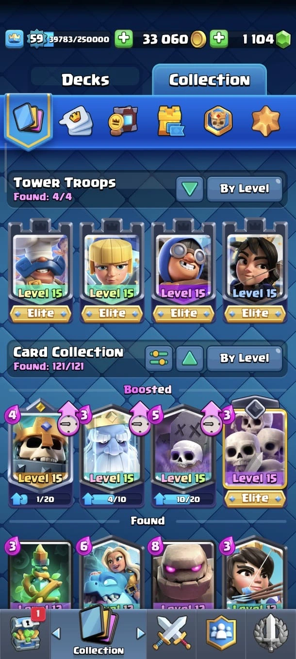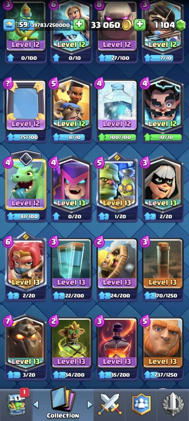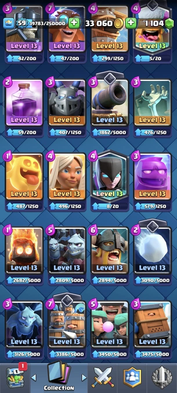 CR LV 59 🔥 Evo 19 🔥 Max Cards 54 🔥 Elite 15 🔥 Emote 121 🔥 Trophy 12000 🔥 Change name on 🔥
