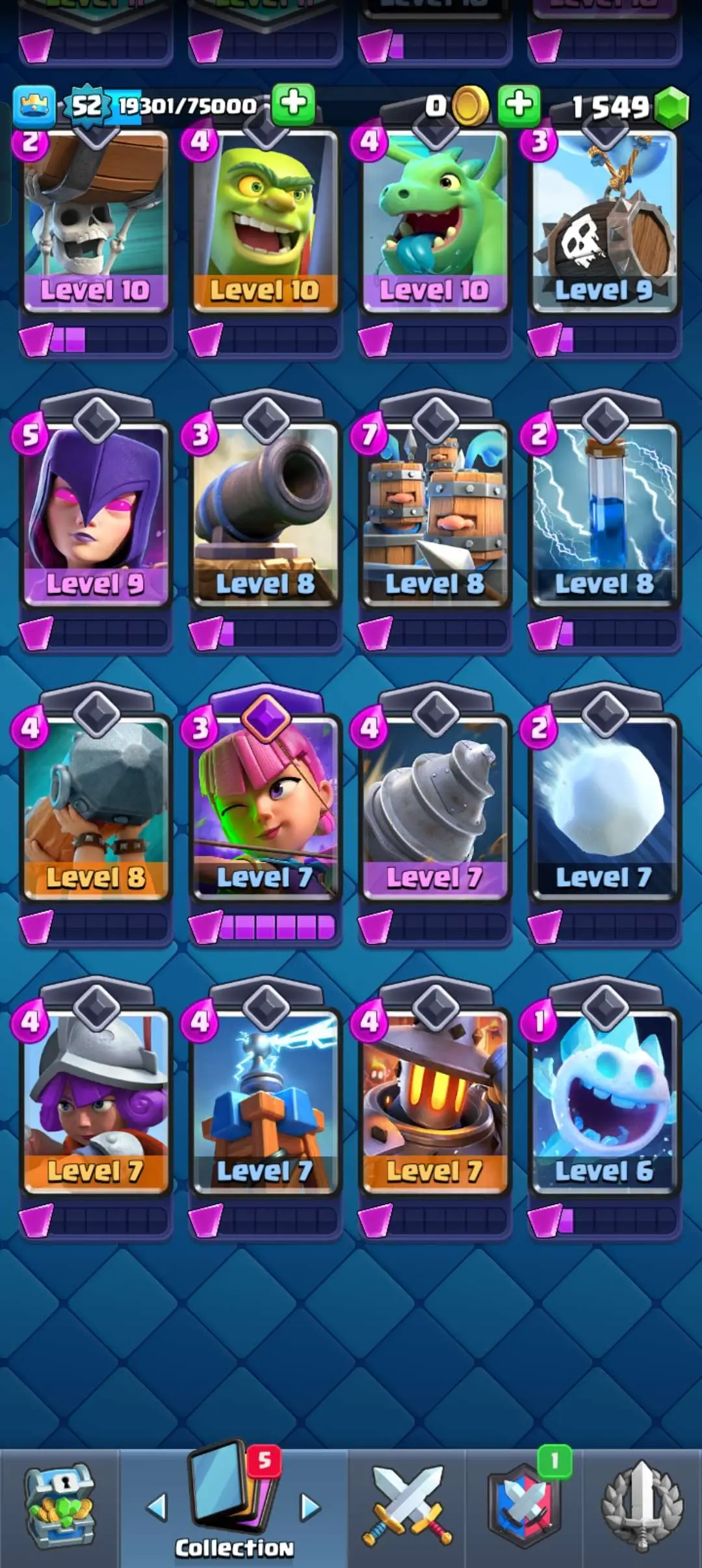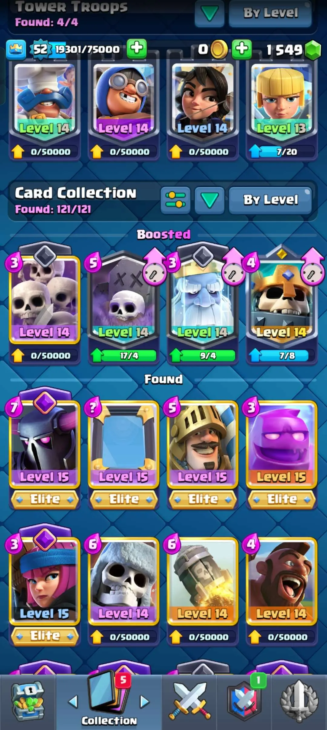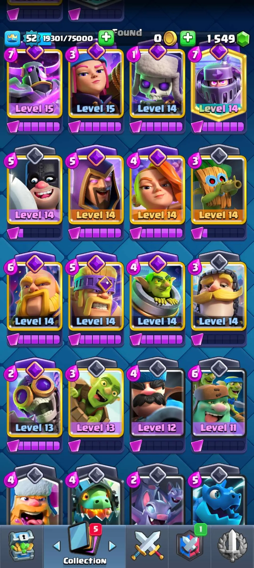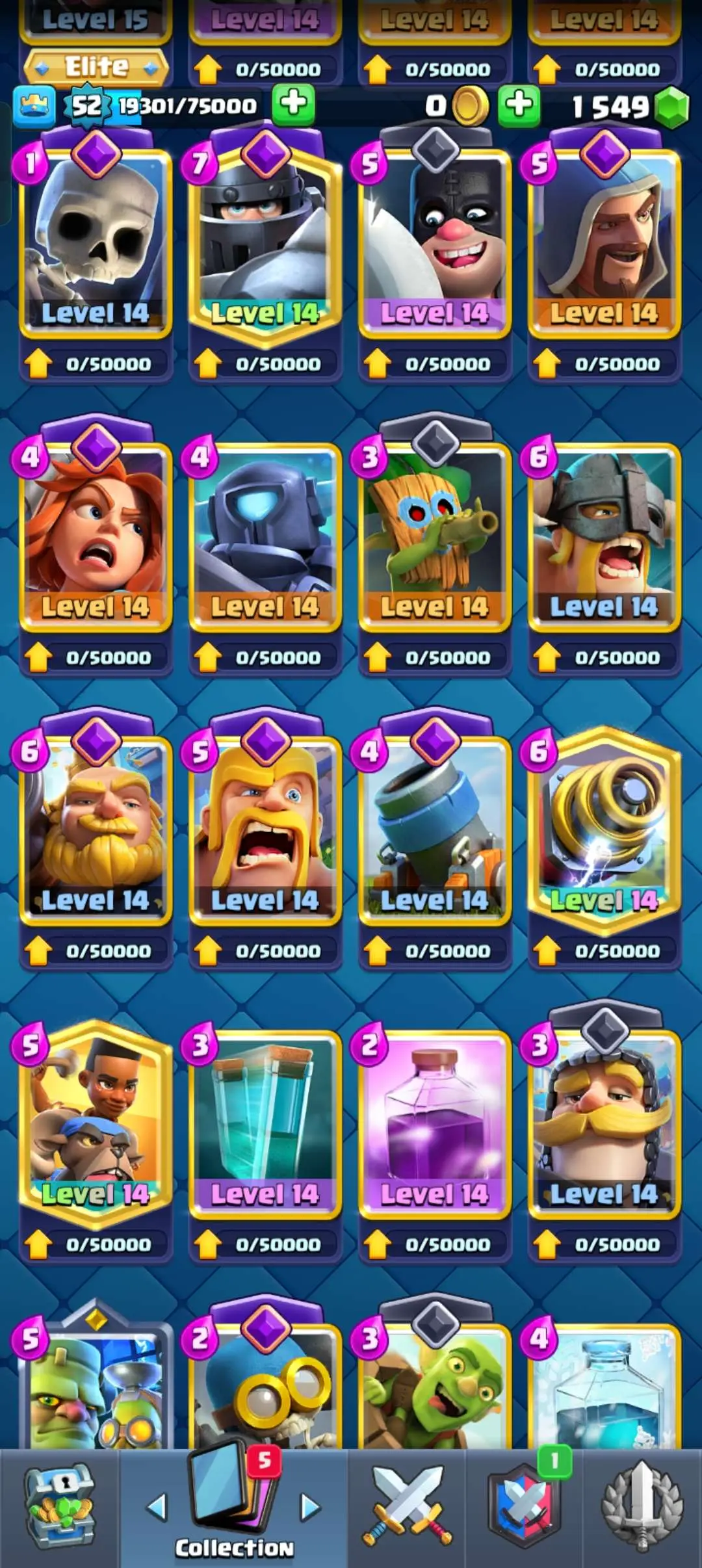 CR Lvl 52 ✨9600 Trophy ✨ KT 14 ✨ 5 Elite cards ✨ 26 max cards ✨ 11 Evo cards ✨ 37 emotes ✨ 7 Tower skins
