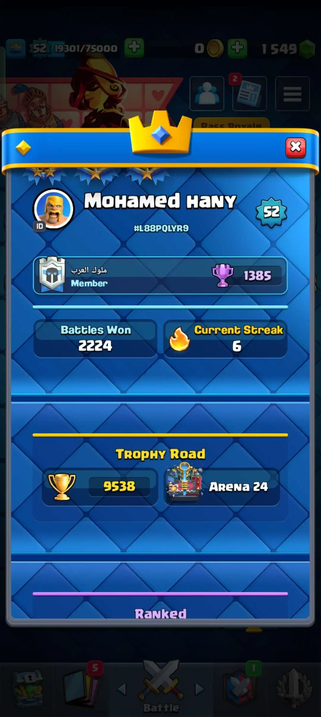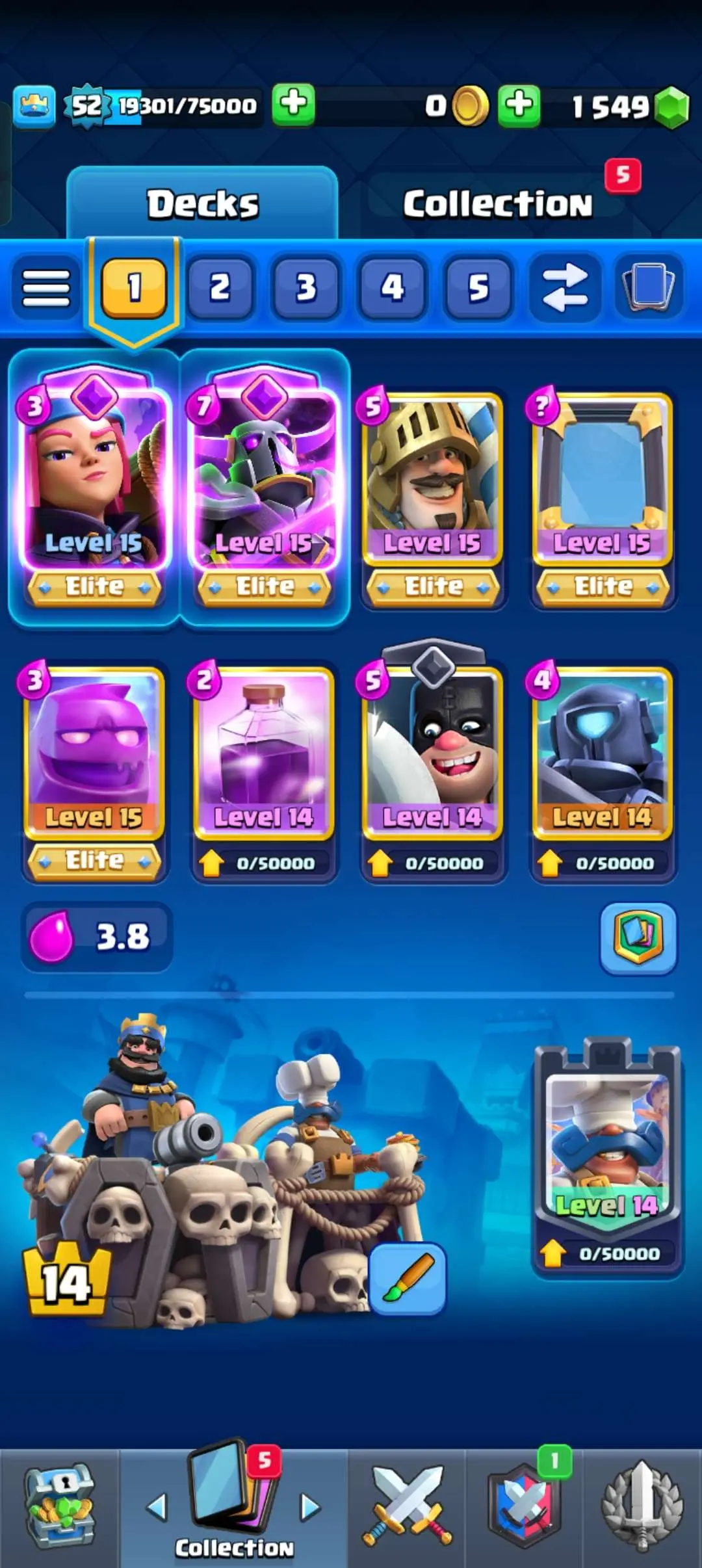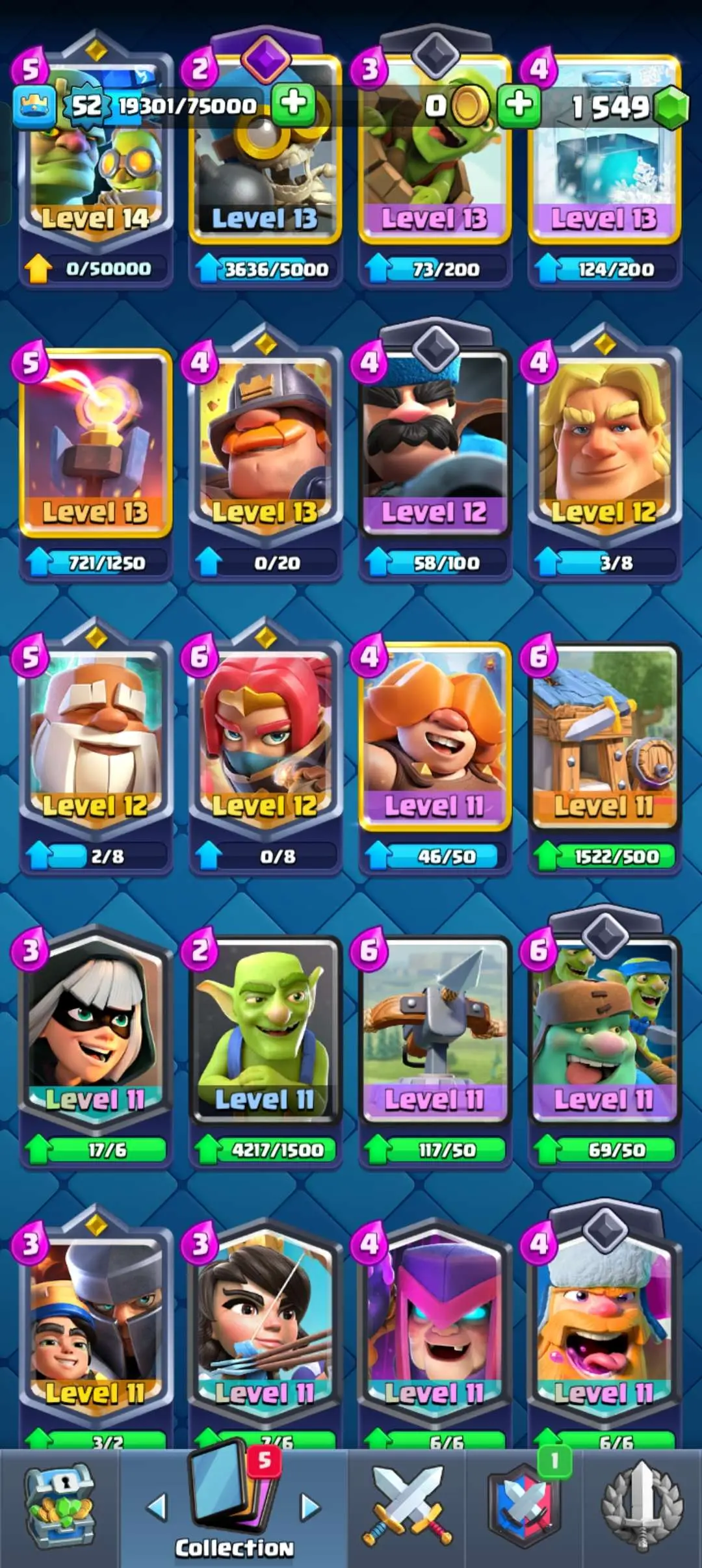 CR Lvl 52 ✨9600 Trophy ✨ KT 14 ✨ 5 Elite cards ✨ 26 max cards ✨ 11 Evo cards ✨ 37 emotes ✨ 7 Tower skins