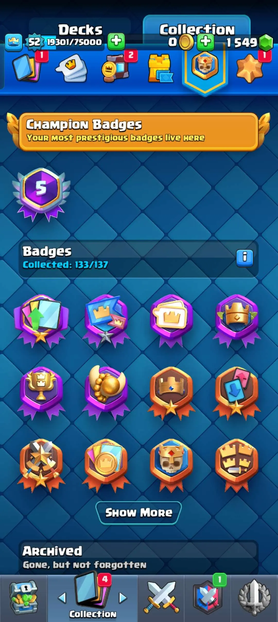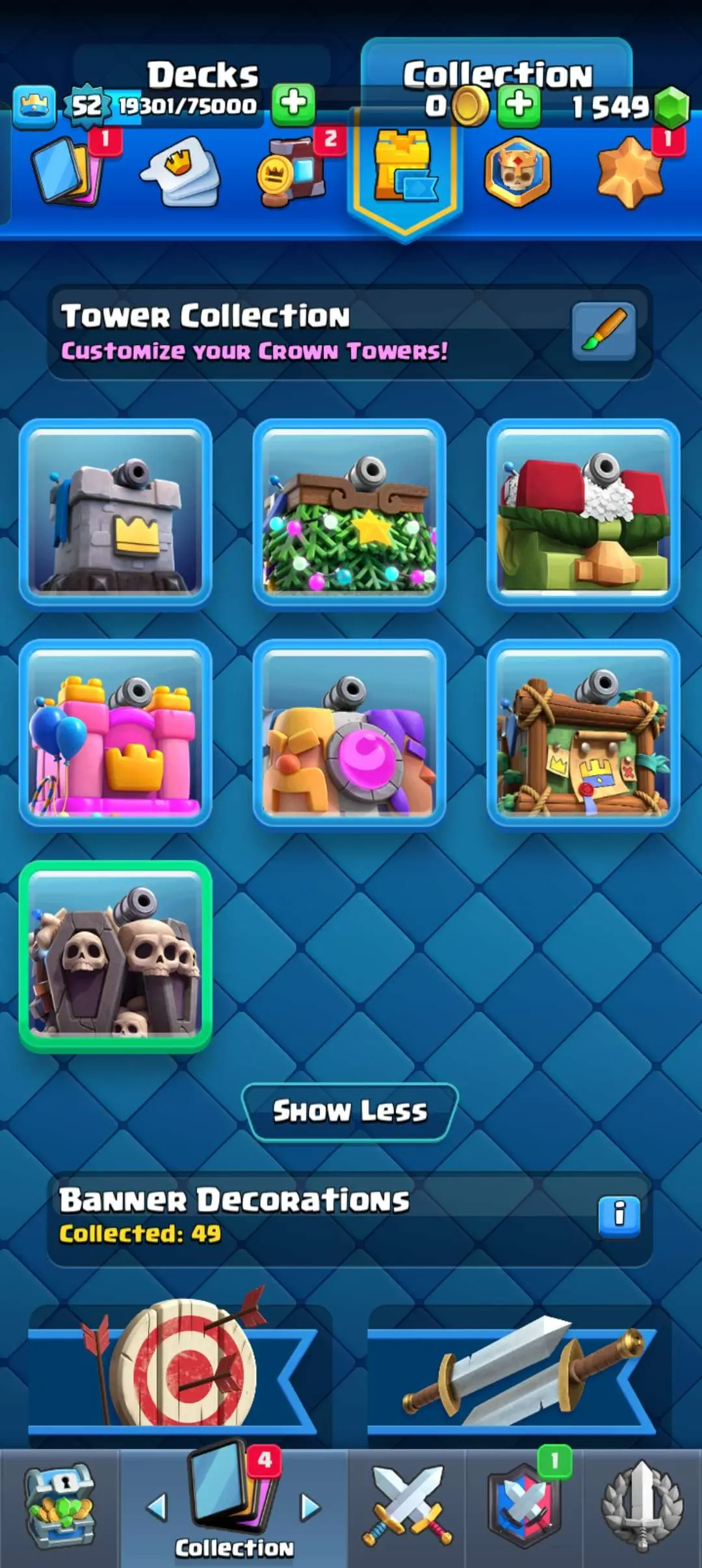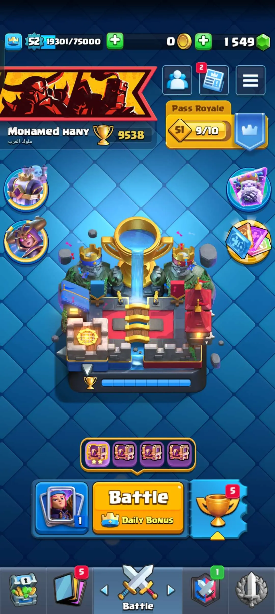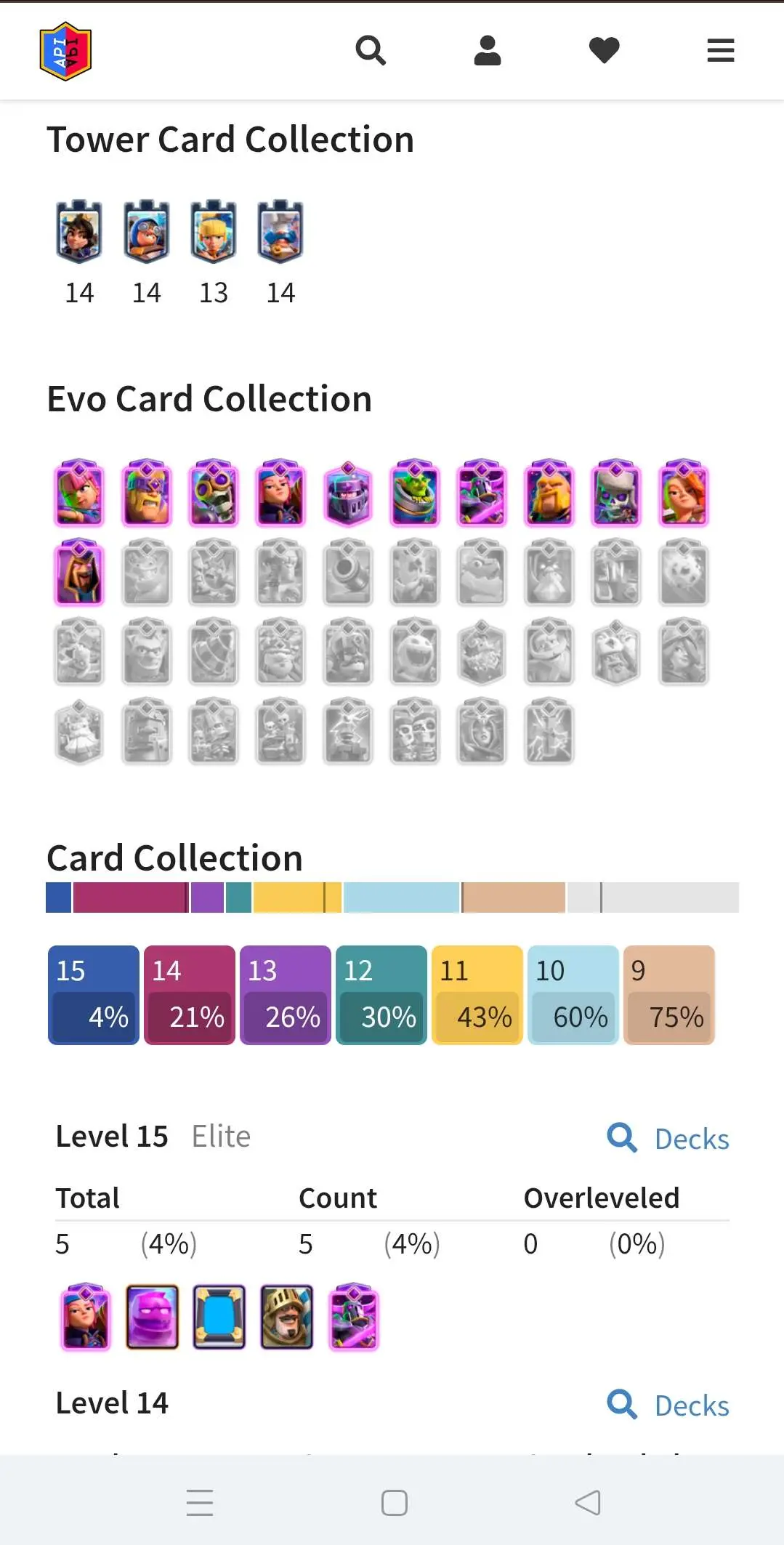 CR Lvl 52 ✨9600 Trophy ✨ KT 14 ✨ 5 Elite cards ✨ 26 max cards ✨ 11 Evo cards ✨ 37 emotes ✨ 7 Tower skins
