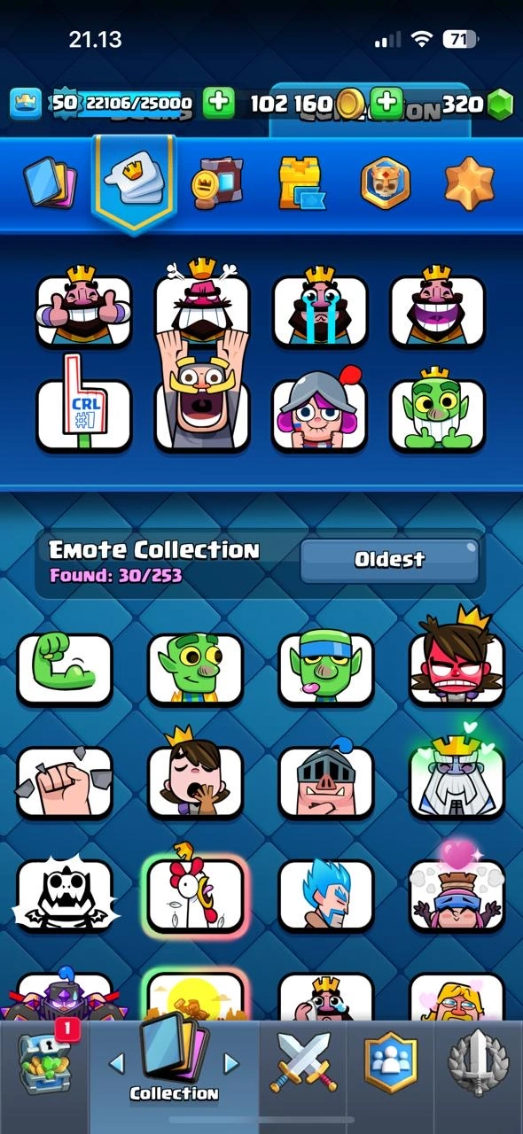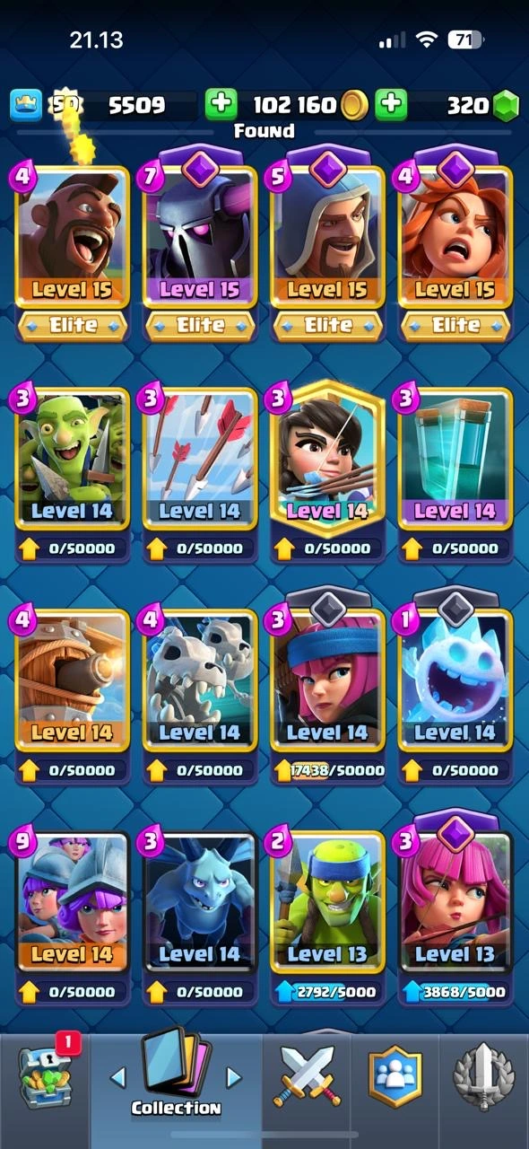 CR XP 50🔥KT14🔥Cn Free🔥4 Elite🔥15 Max Card🔥Arena 24🔥33 emotes🔥Acces Full🔥Cheapest and safe Accountt