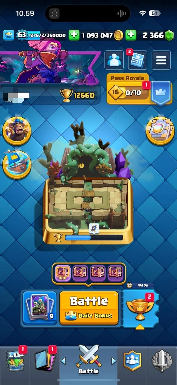 CR XP 63🔥KT15🔥40 EliteCard🔥107 Max Card🔥23 Evo🔥92 Emotes🔥10 Skins tower🔥12260 Trophies🔥Cn on🔥Acces Full🔥Cheapest and Safe Account