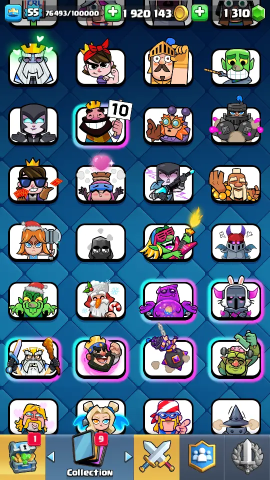 👑 King Tower 15 🏆 9684 Trophies ⚔️ Level 55 💎 Gems: 1310 🧬 Evolutions: 14 🔒 Recovery Codes