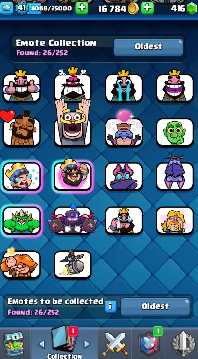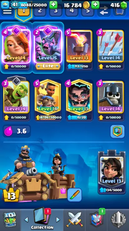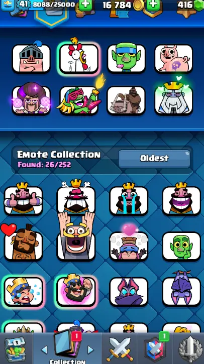 KT 13 🏮 LEVEL 41 🏮 ARENA 21 🏮 8,250 TROPHIES 🏮 117 CARDS 🏮 20 LEGENDARY 🏮 6 EVO 🏮 30+ EMOTES 🏮 16K GOLD 🏮 416 GEMS 🏮FCR2