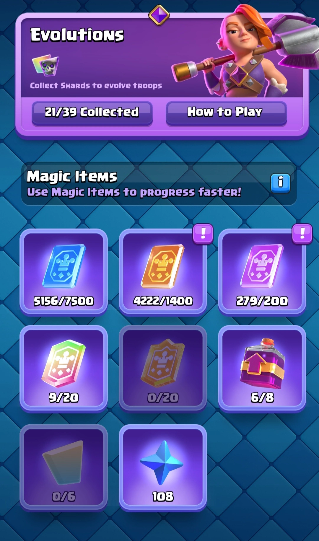 ⭐ KT 15 ⭐ 21 EVOLUTION ⭐ 18 Towerskins ⭐ 70 EXP ⭐ 6 Level 16 , 37 Level 15 , 71 Level 14 Cards ⭐ 200 Emotes ⭐ Namechange Available ⭐ 10k Trophies